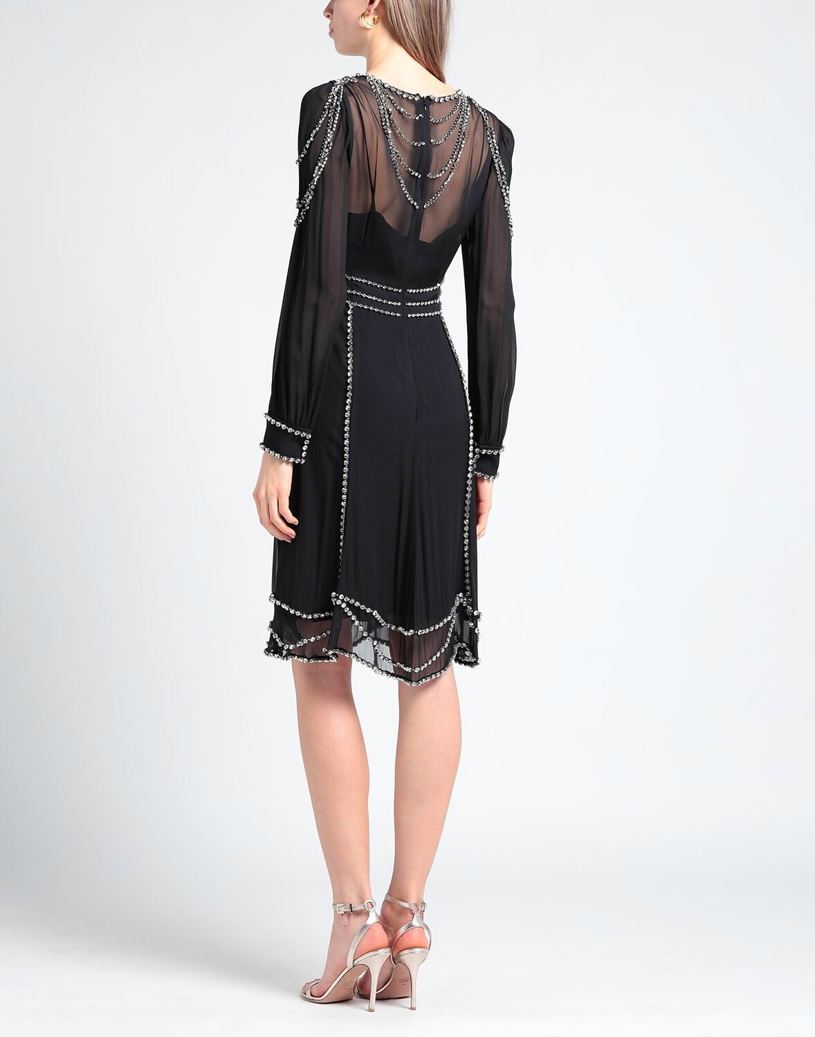 Шифон, вышивка, стразы, одноцветное изделие с аппликациями, круглый воротник, длинные рукава, манжеты на кнопках, скользящий силуэт, застежка-молния, без карманов