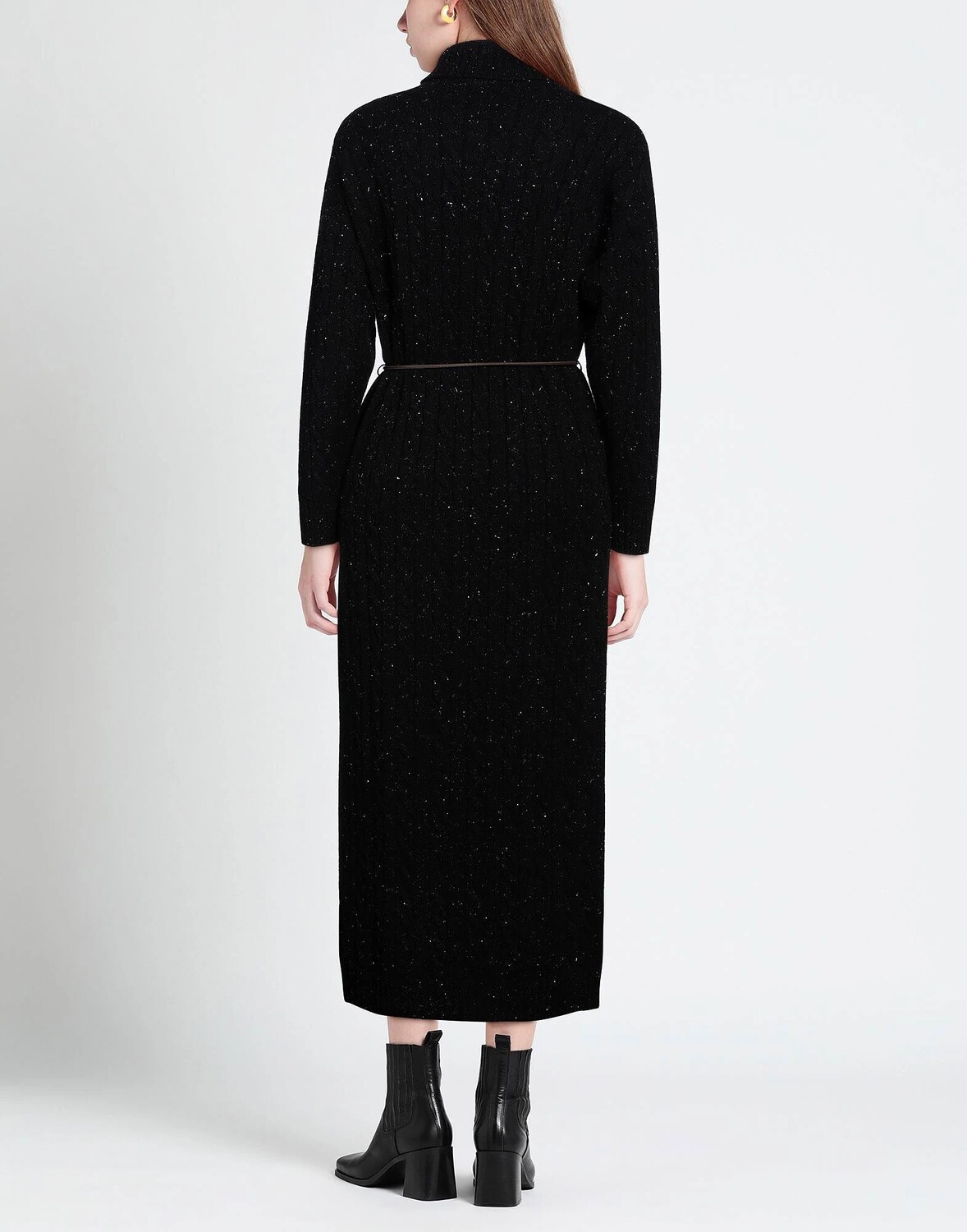 Трикотажное, металлик, средней плотности, пояс, одноцветное изделие, водолазка, длинные рукава, без карманов, ручная стирка или химчистка, не отбеливать, нельзя сушить в стиральной машине, облегающее платье