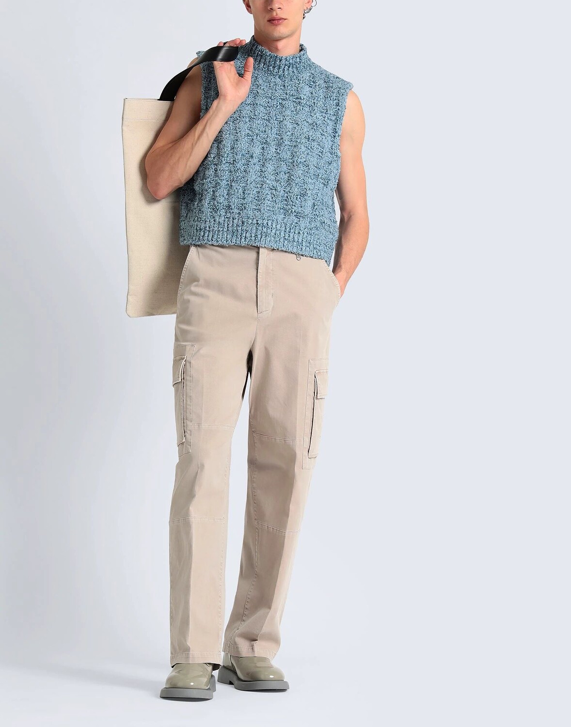 Габардин, без аппликаций, одноцветное изделие, завышенная талия, прямые брючины, классический крой, застежка-молния, пуговицы, множество карманов, стрейч, карго
