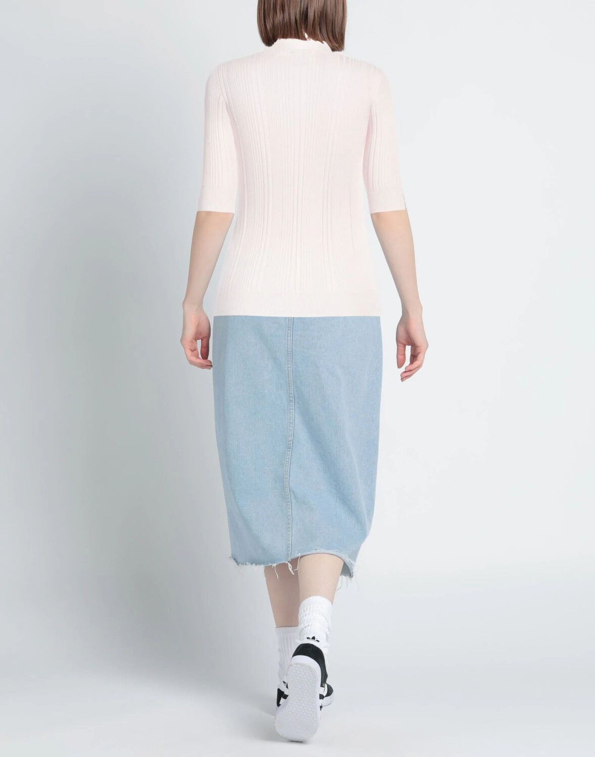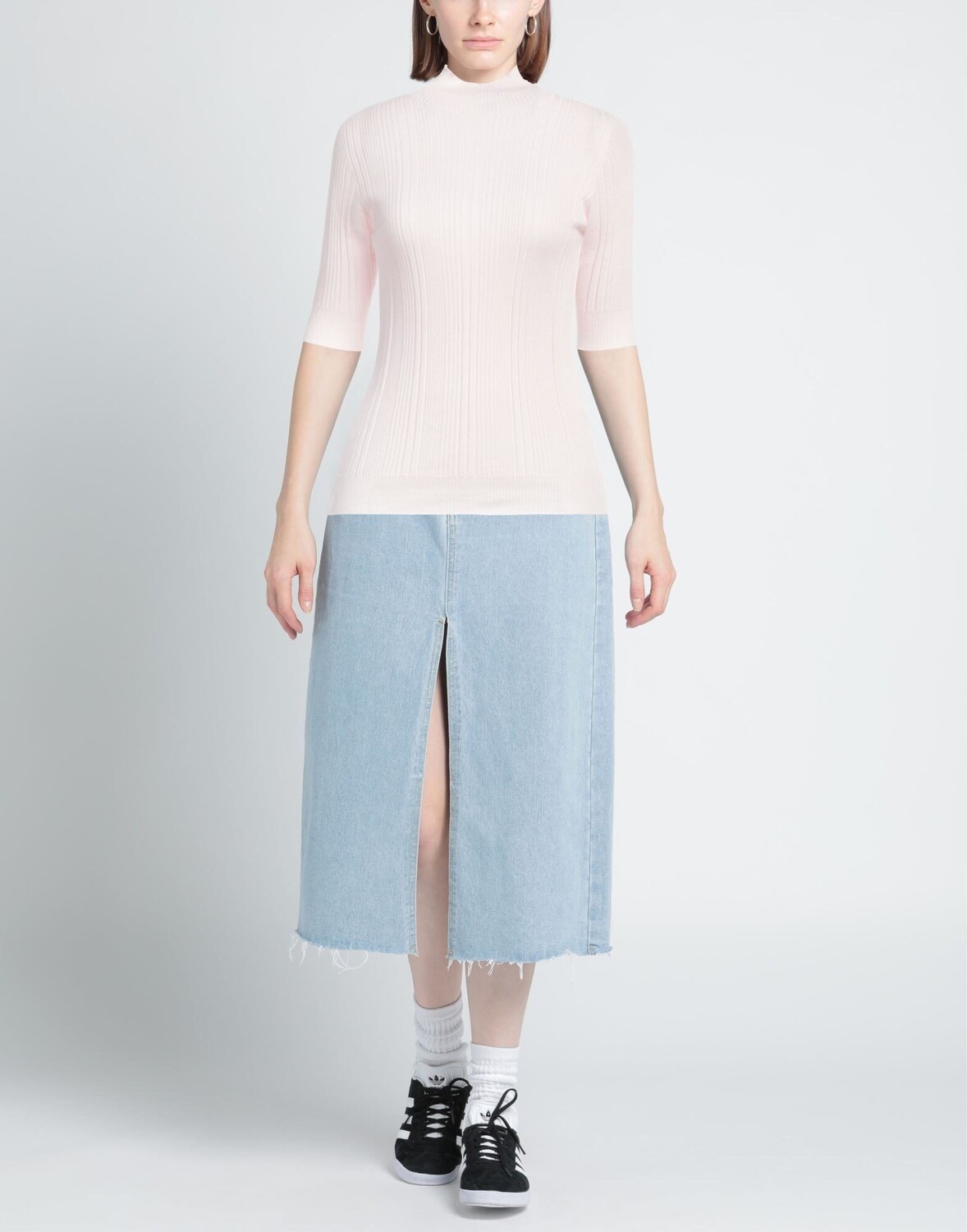 Трикотажное, в рубчик, легкая вязка, без аппликаций, одноцветное изделие, водолазка, короткие рукава, без карманов, ручная стирка, не отбеливать, не сушить в стиральной машине, небольшой тираж этой марки