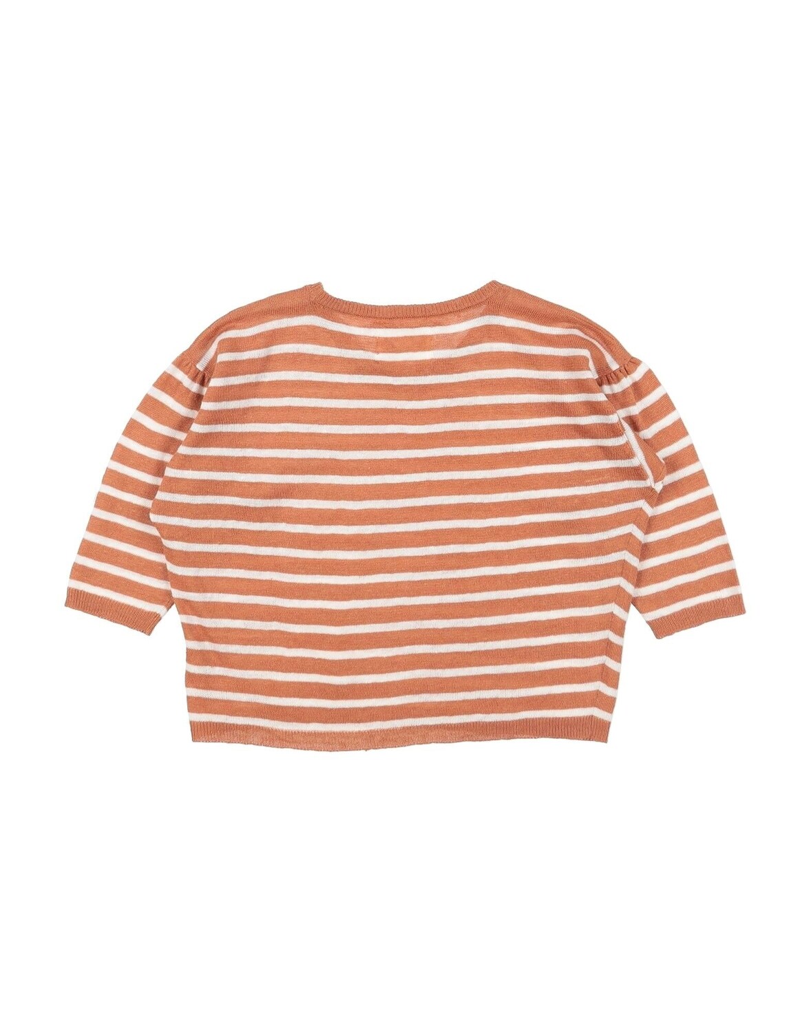 Трикотажное, без аппликаций, двухцветное, в полоску, круглый воротник, длинные рукава, без карманов, ручная стирка, химическая чистка деликатными растворителями, не отбеливать, нельзя сушить в стиральной машине, гладить при температуре не выше 110°С.
