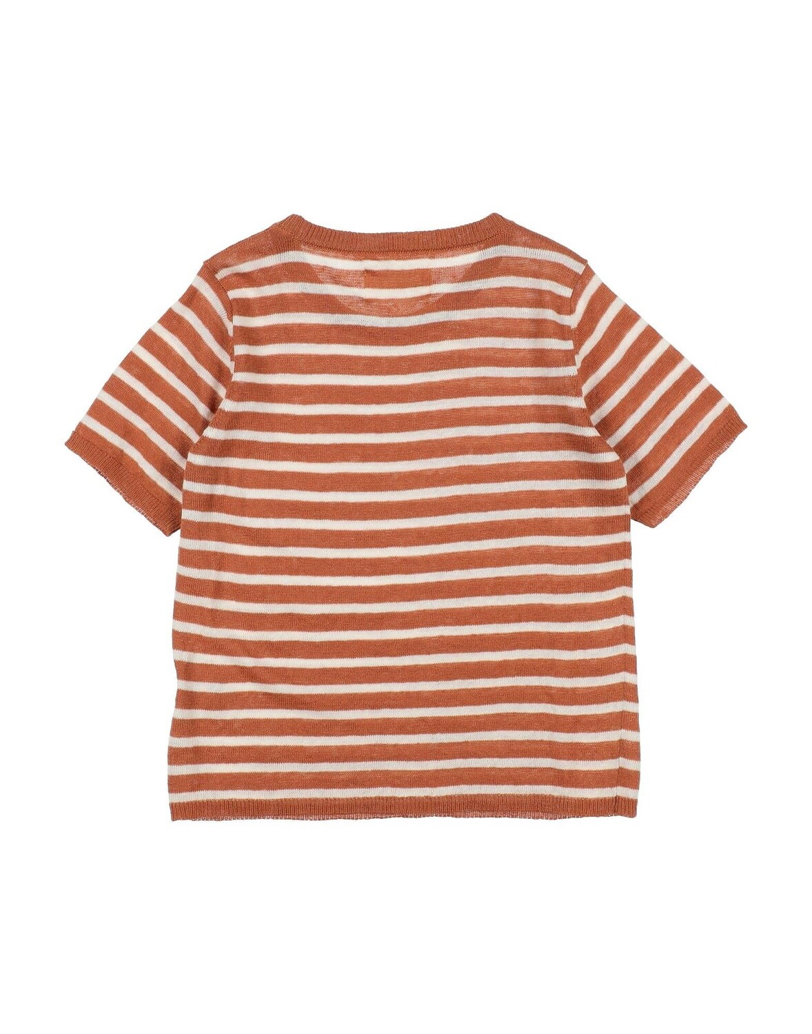 Трикотаж, легкая вязка, без аппликаций, в полоску, круглый вырез, короткие рукава, без карманов, ручная стирка, химическая чистка, нельзя отбеливать, нельзя сушить в стиральной машине, гладить при температуре не выше 110°C