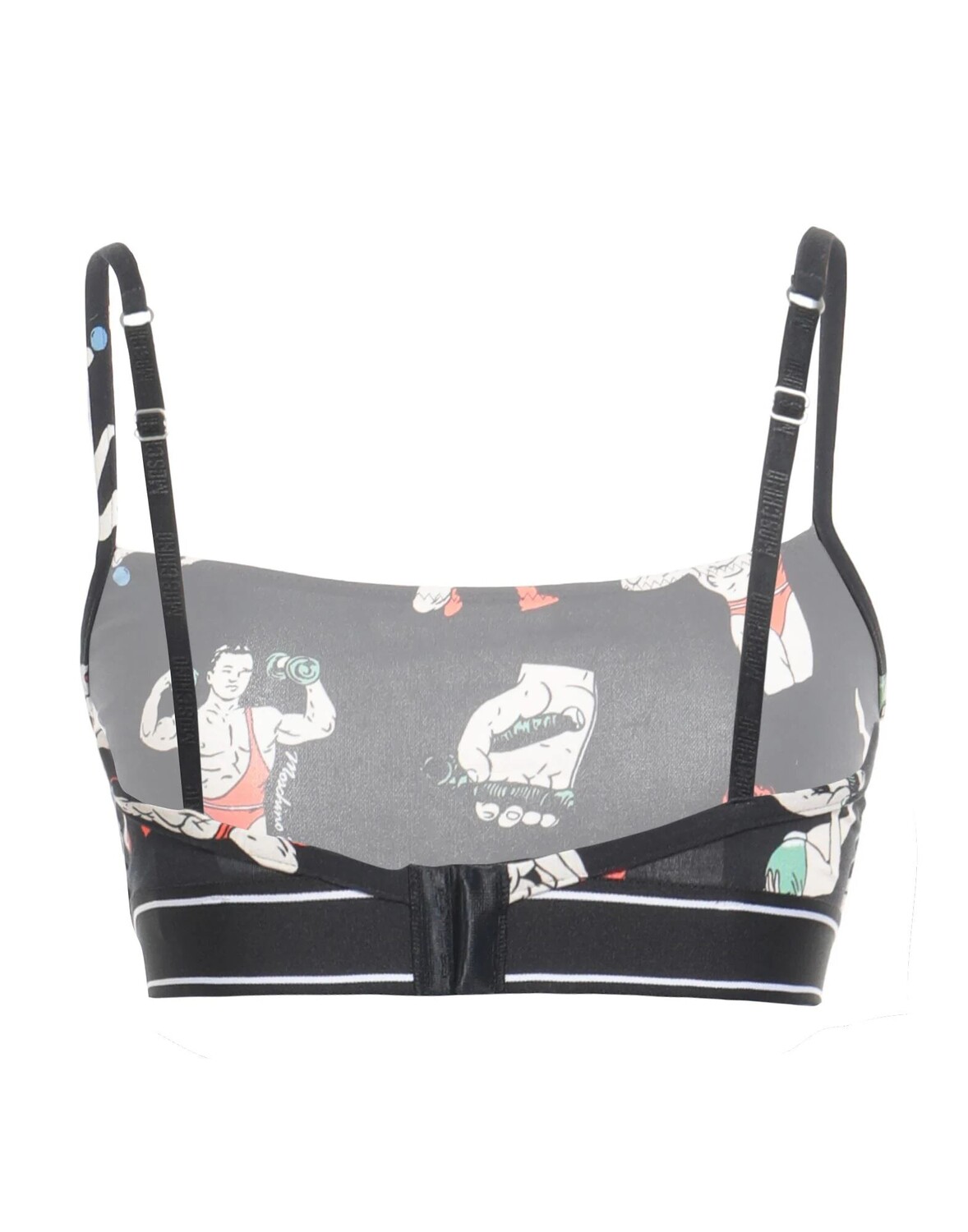 Джерси, логотип бренда, разноцветный узор, внутренняя часть на частичной подкладке, застежка на крючки, бюстгальтер без косточек, спортивный стиль