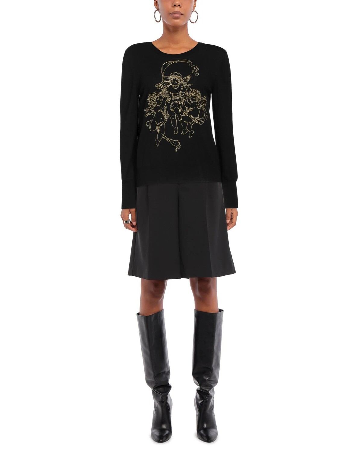 Трикотаж, ламе, легкий трикотаж, логотип бренда, вышивка, одноцветное изделие, круглый вырез, длинные рукава, без карманов, ручная стирка или химчистка, нельзя отбеливать, нельзя сушить в стиральной машине