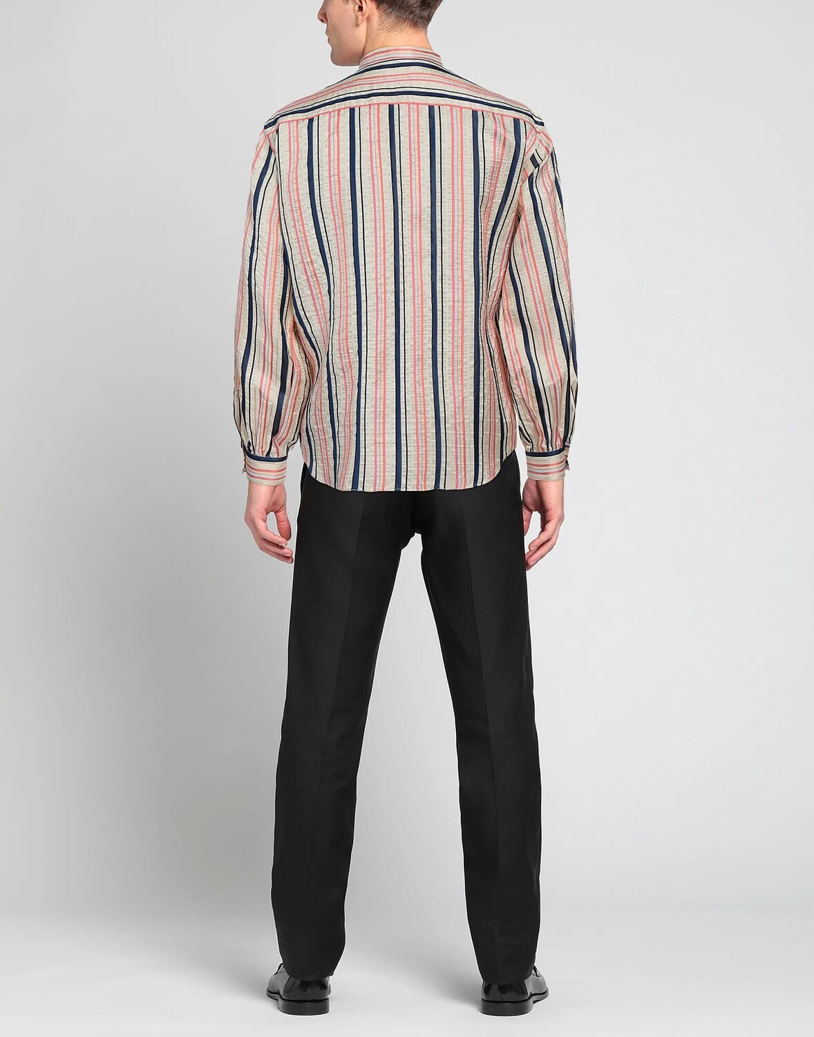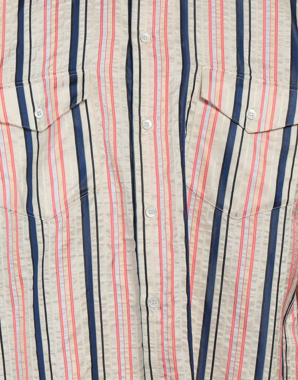 Сатин, без аппликаций, в полоску, разноцветный, воротник-стойка, длинные рукава, манжеты на пуговицах, без подкладки, застежка на пуговицы, два нагрудных кармана, рубашка обычного кроя