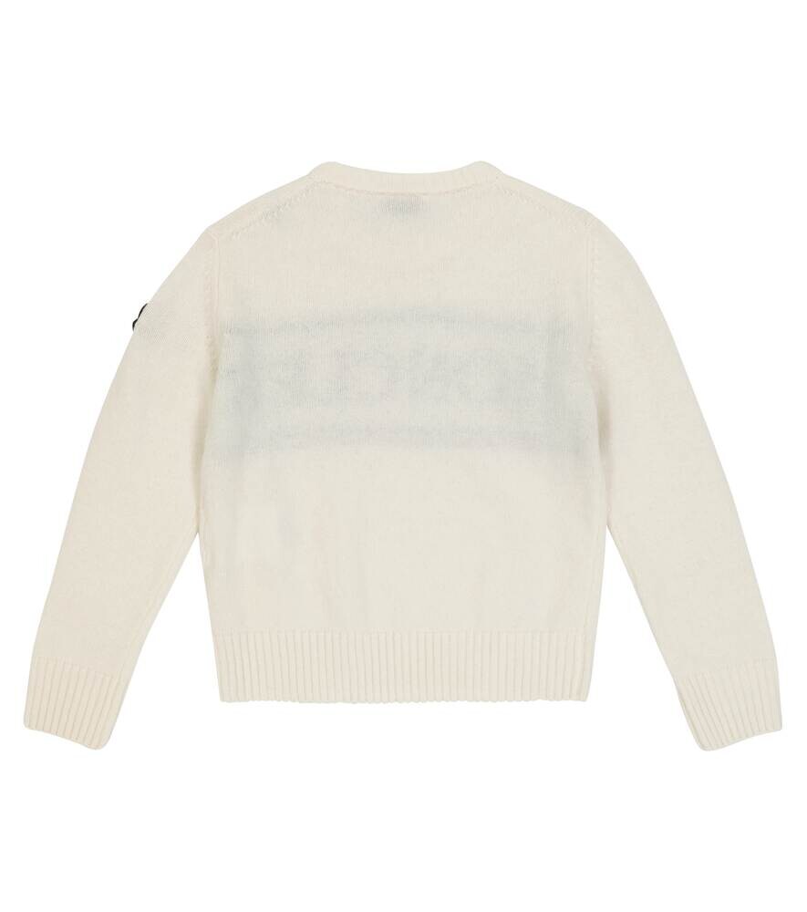 Шерстяной вязаный свитер интарсия с логотипом Moncler Enfant, черный