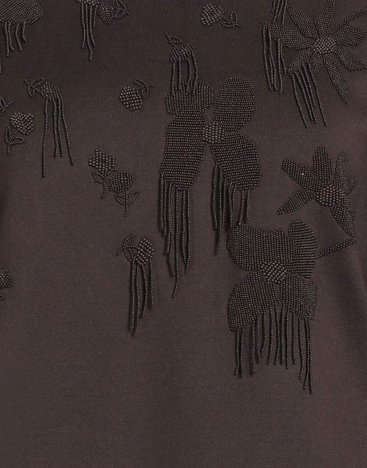 Френч терри, бусины, логотип бренда, одноцветное изделие с аппликациями, круглый вырез, длинные рукава, химчистка, нельзя сушить в стиральной машине, нельзя гладить