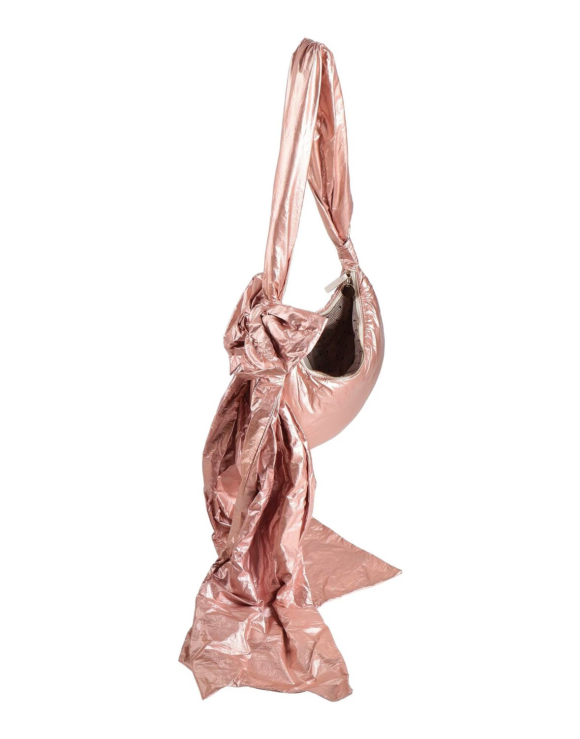 Большая, тканая, с эффектом покрытия, с бантиком, однотонная с аппликациями, застежка-молния, на подкладке, ручка для сумки, содержит нетекстильные части животного происхождения, сумка-хобо