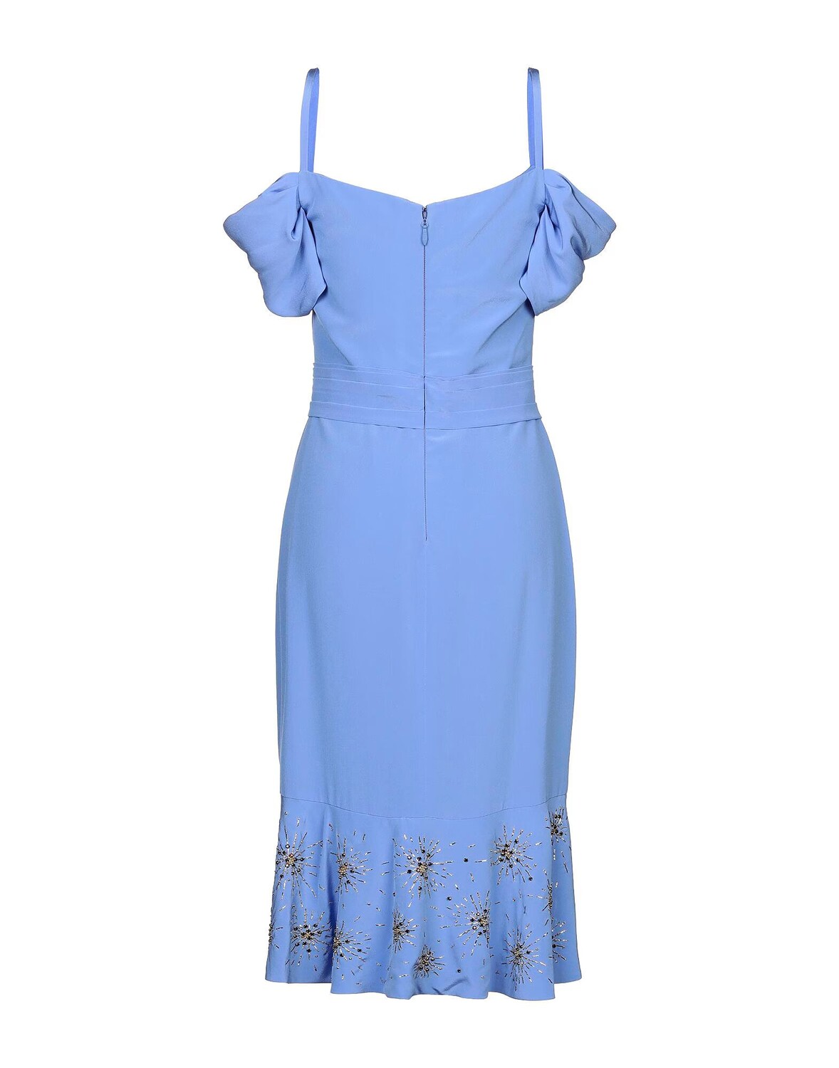 Креп, металлические аппликации, стразы, одноцветное изделие, широкий вырез горловины, без рукавов, без карманов, застежка сзади, на крючках, молния, внутри на подкладке