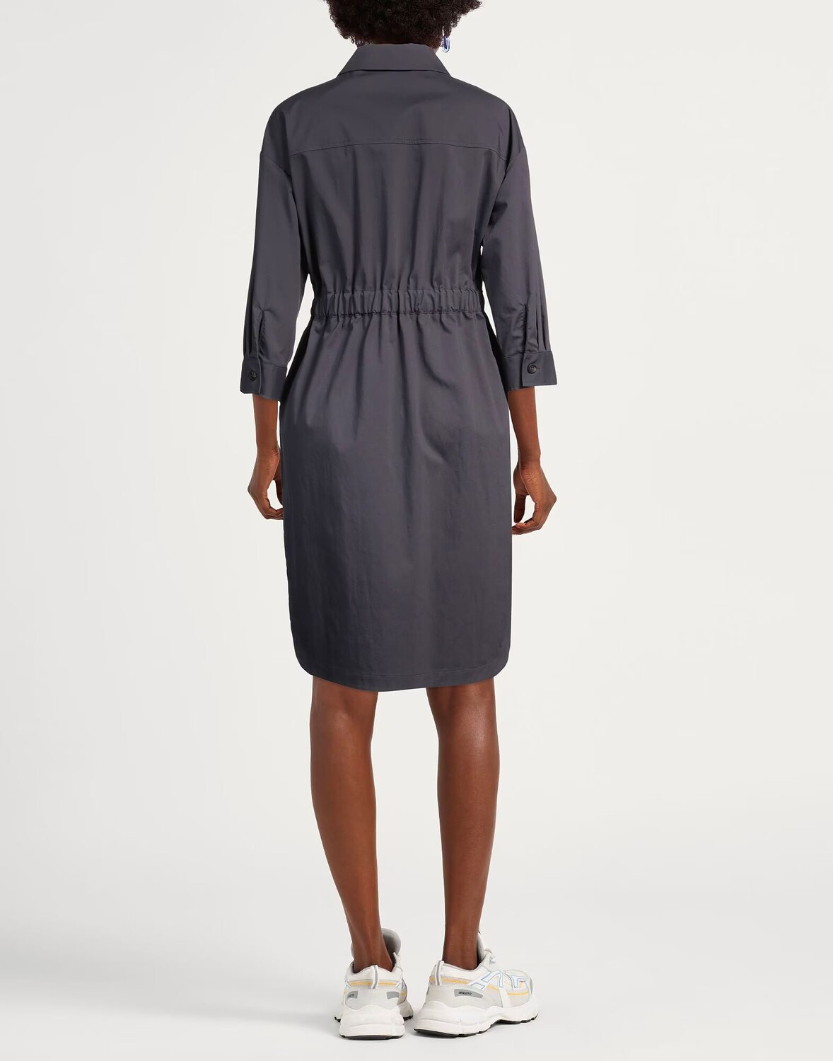 Платье-рубашка, ткань, пояс, одноцветное изделие с аппликациями, классический воротник, рукава 3/4, без подкладки, застежка на пуговицах, множество карманов, карманы с клапанами, стрейч, машинная стирка или химчистка, не отбеливать, сушить в стиральной машине
