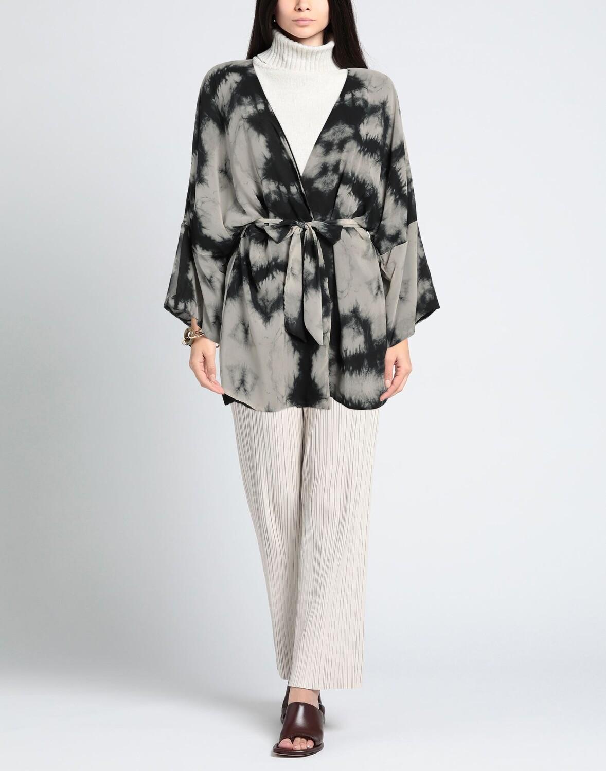 Креп, пояс, разноцветный, глубокий вырез, длинные рукава, на подкладке, без карманов, кимоно