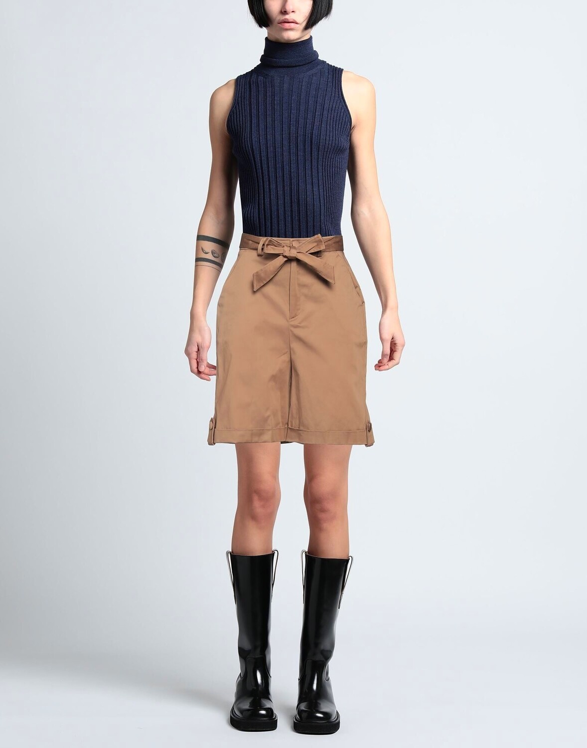 Атлас, ремень, одноцветное изделие, высокая талия, застежка-молния, 1 пуговица, отворот по краю, множество карманов, стрейч, ручная стирка или химчистка, не отбеливать, сушить в стиральной машине, шорты