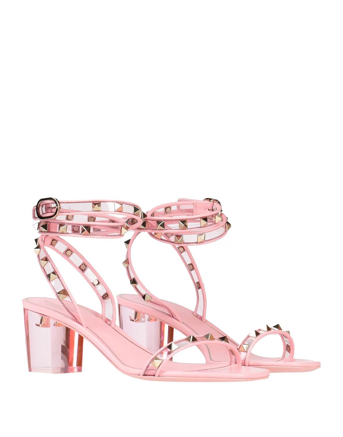 Босоножки с ремешком на щиколотке, кожа, пластик, с прозрачным эффектом, заклепки, одноцветное изделие с аппликациями, подкладка из кожи, ремешок на щиколотке с пряжкой, круглый носок, квадратный каблук, кожаная подошва, содержит нетекстильные части животного происхождения