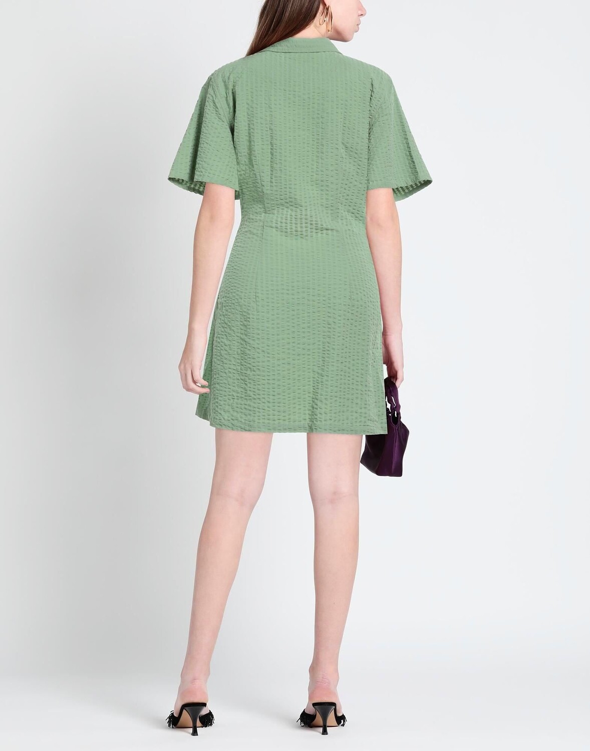 Полотняное переплетение, без аппликаций, одноцветное изделие, классический вырез горловины, короткие рукава, без подкладки, пуговицы, без карманов, платье-рубашка