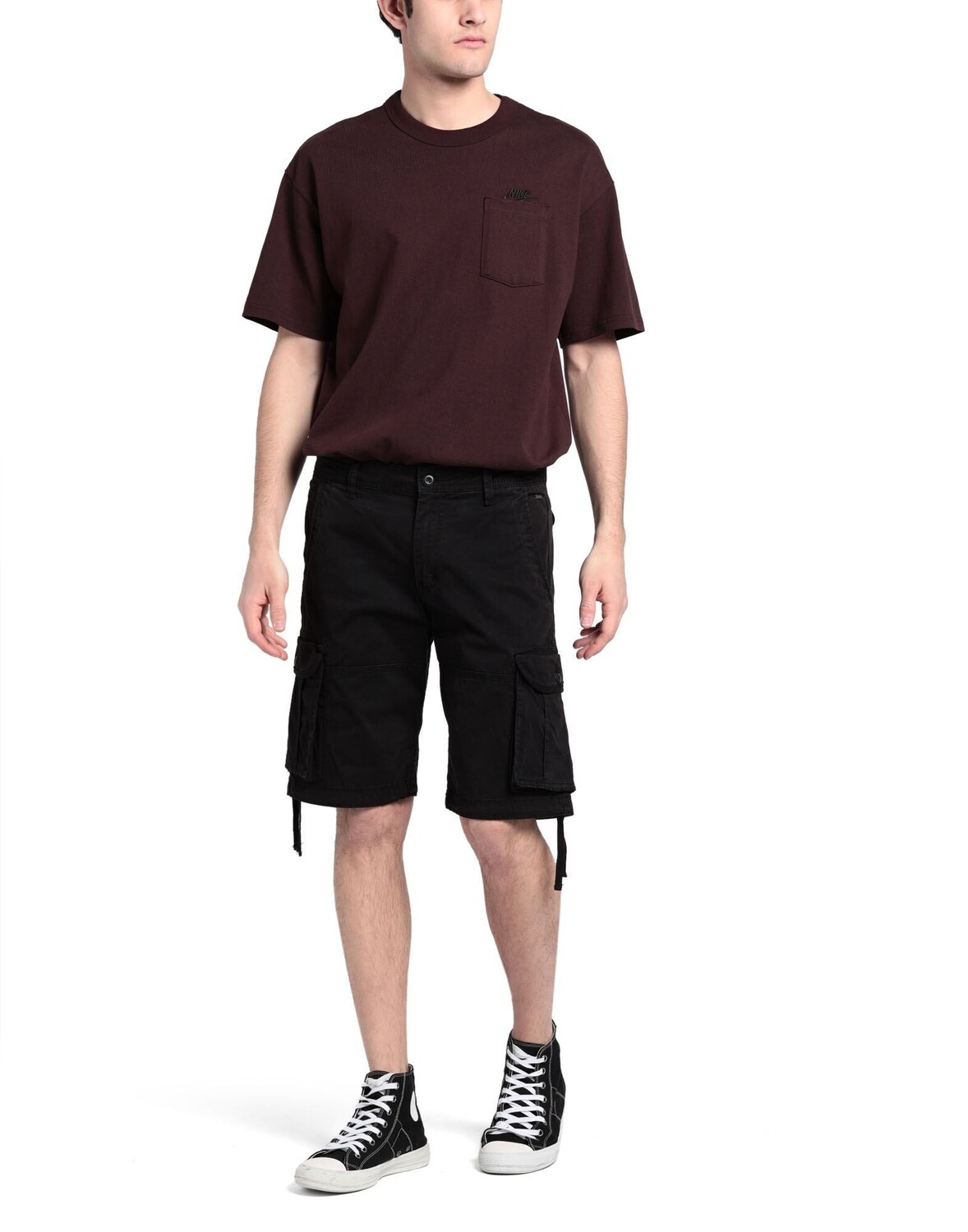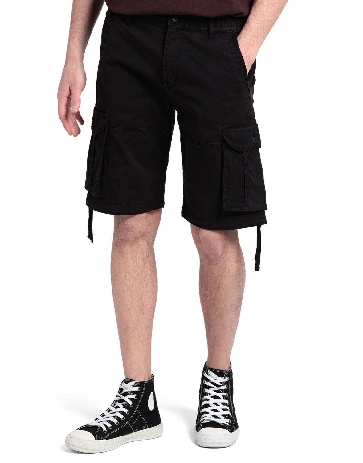 Габардин, логотип бренда, одноцветное изделие, средняя посадка, шлевки для ремня, стандартный крой, застежка-молния, 1 пуговица, подол на кулиске, множество карманов, стрейч, шорты карго