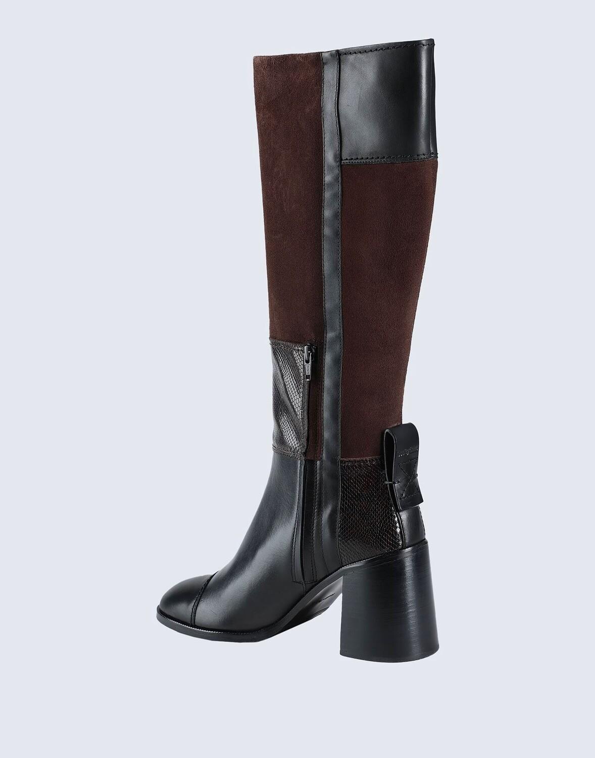 Кожа, принт под змеиную кожу, эффект замши, логотип бренда, двухцветное изображение, кожаная подкладка, застежка-молния, скругленный носок, квадратный каблук, резиновая подошва, содержит нетекстильные части животного происхождения, замшевые ботинки