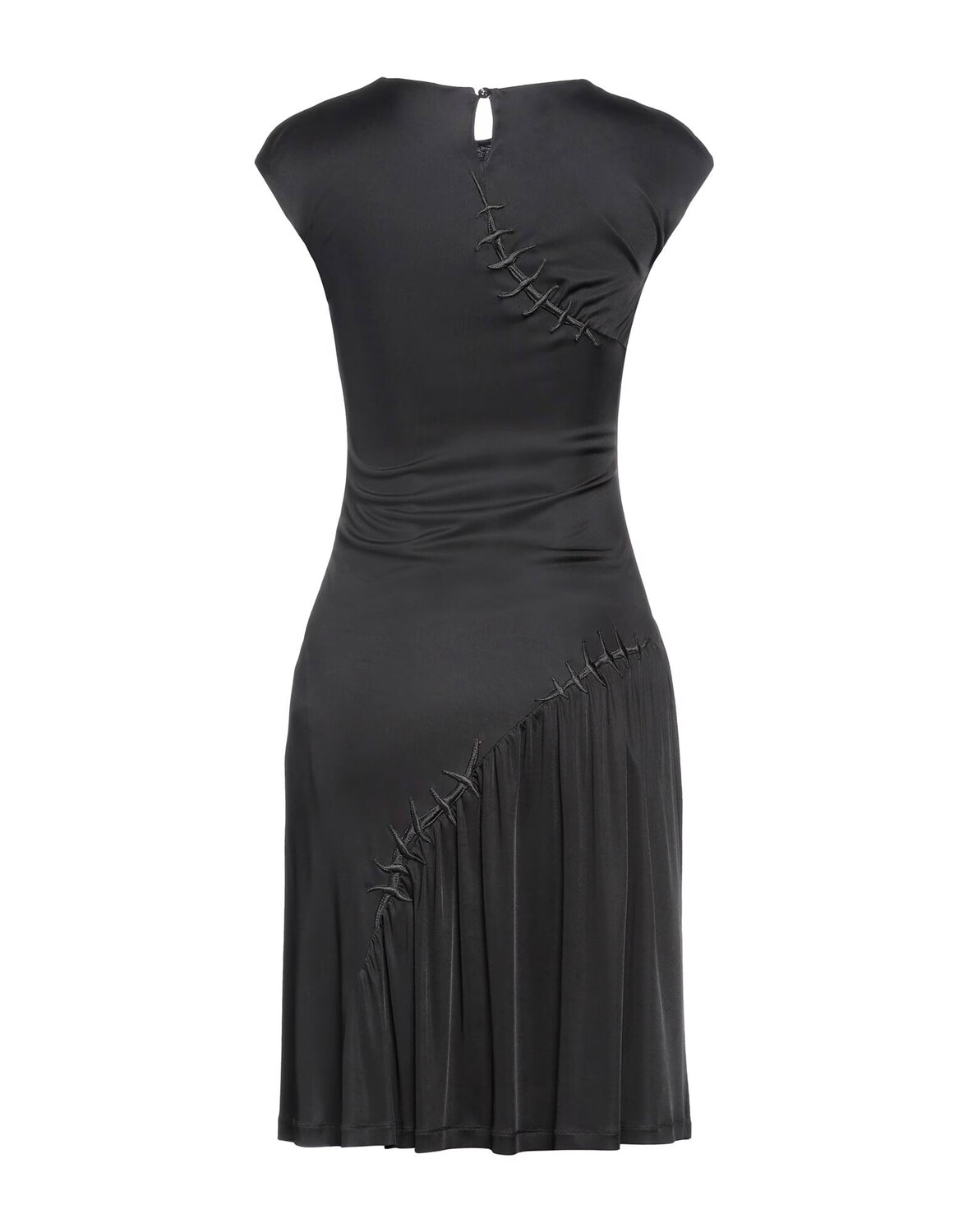 Джерси, контрастные аппликации, одноцветное изделие, круглый вырез, без рукавов, внутри на подкладке, застежка-молния, 1 пуговица, без карманов, водостойкая, модель трапеция