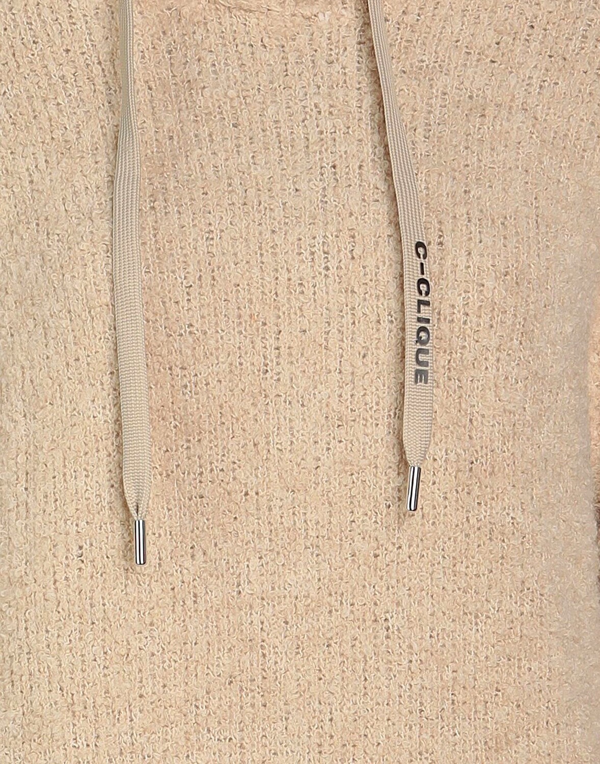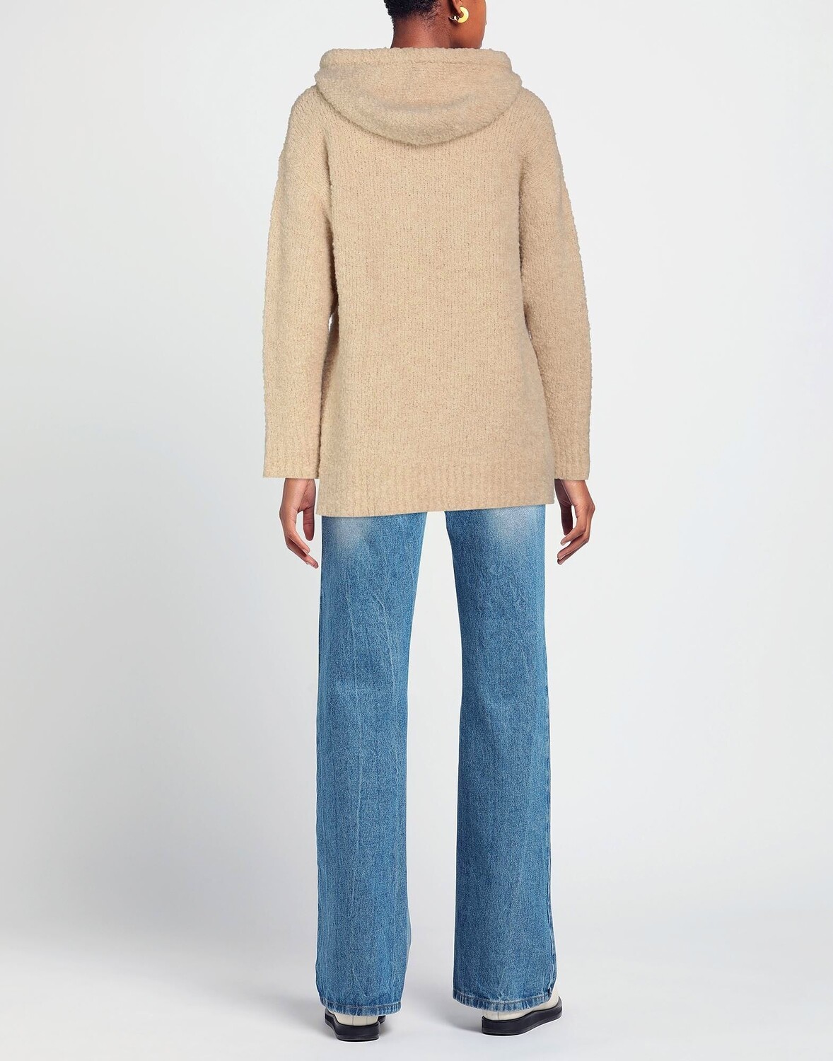 Букле, трикотаж средней плотности, логотип бренда, одноцветное изделие, воротник с капюшоном, длинные рукава, один карман