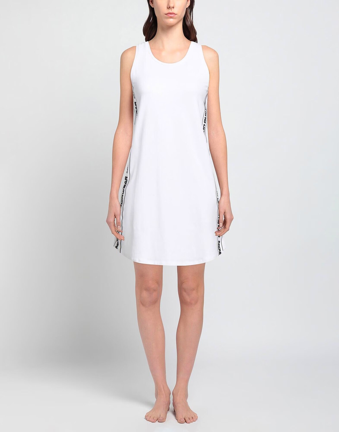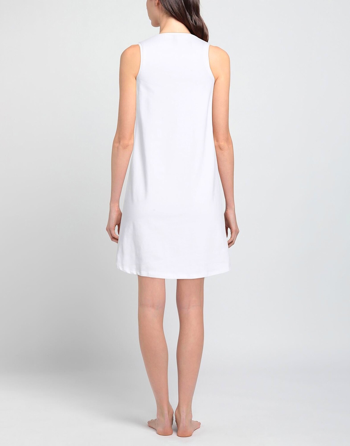 Трикотаж, полоски по боковым швам, однотонное изделие с аппликациями, круглый воротник, без рукавов, без карманов, стрейч, ночная рубашка