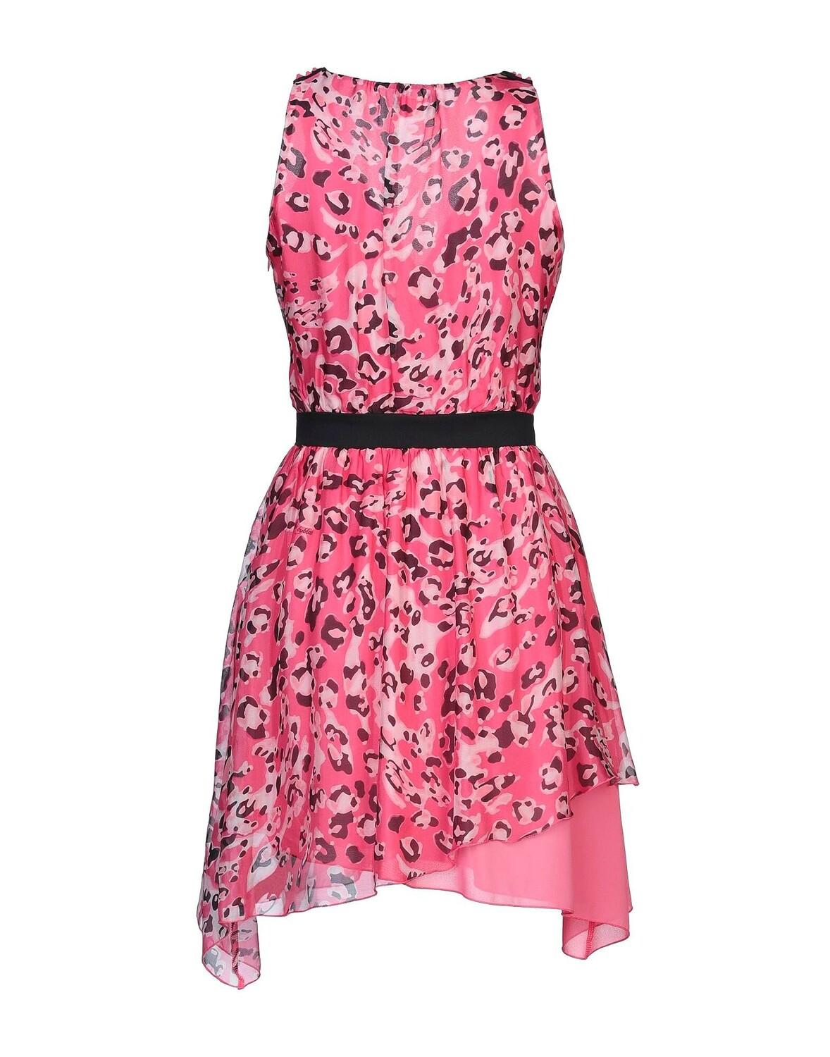 Асимметричное платье, шифон, украшение, логотип бренда, леопардовый принт, v-образный вырез, без рукавов, на подкладке, застежка-молния, без карманов