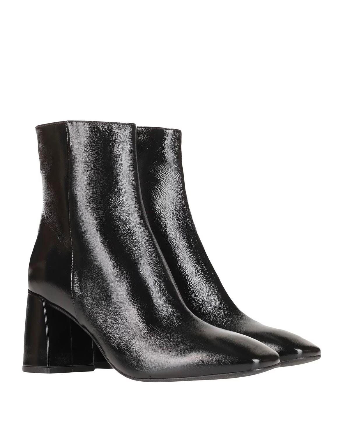 Кожа, эффект лака, без аппликаций, одноцветное изделие, кожаная подкладка, застежка-молния, квадратный носок, квадратный каблук, резиновая подошва, содержит нетекстильные части животного происхождения, ботильоны