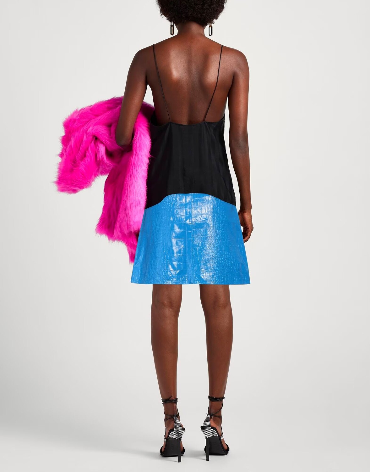 Расклешенная юбка, кожа, крокодиловый принт, одноцветное изделие, логотип бренда, внутри на подкладке, кнопки, множество карманов, химчистка, нельзя отбеливать, нельзя сушить в стиральной машине, содержит нетекстильные части животного происхождения