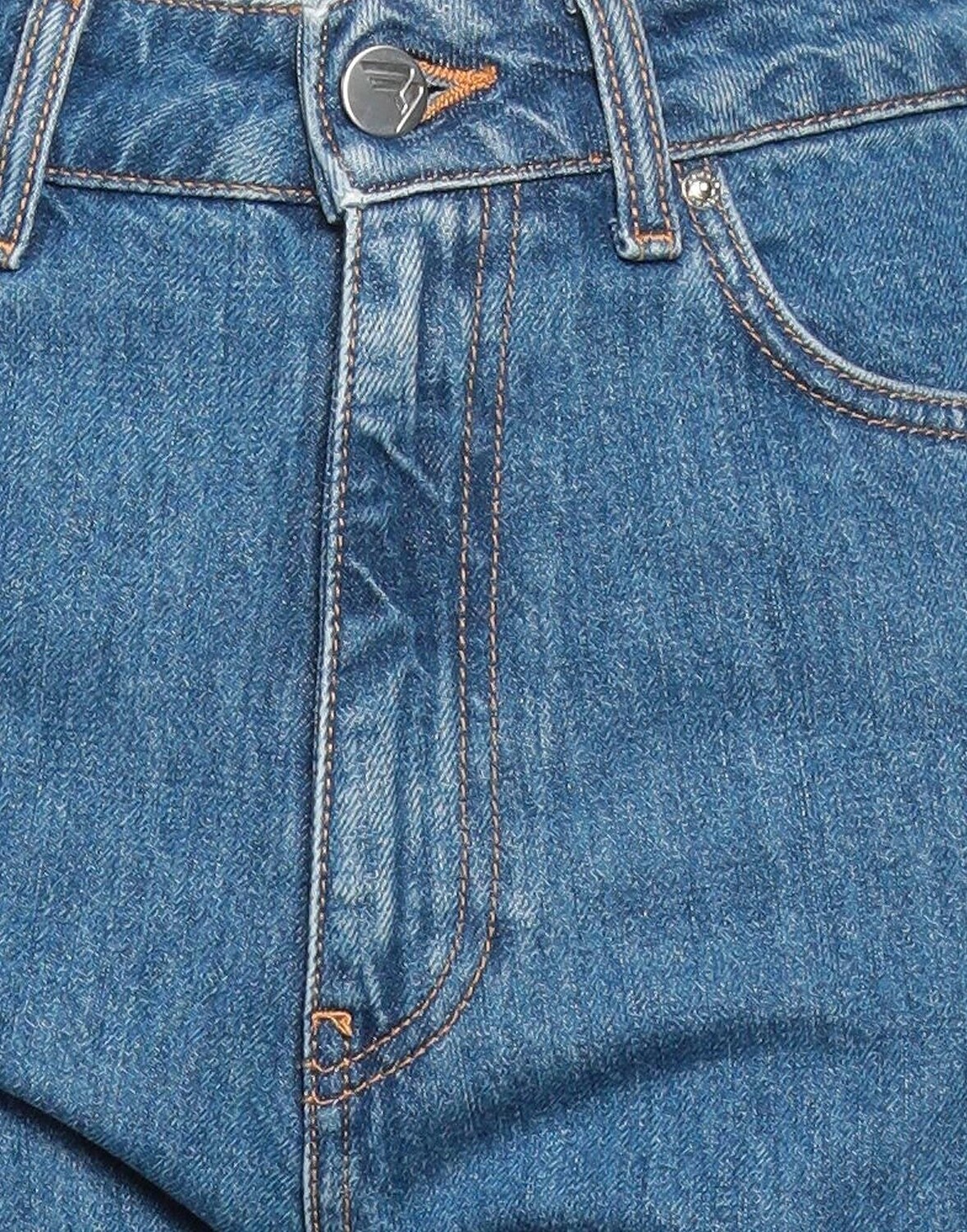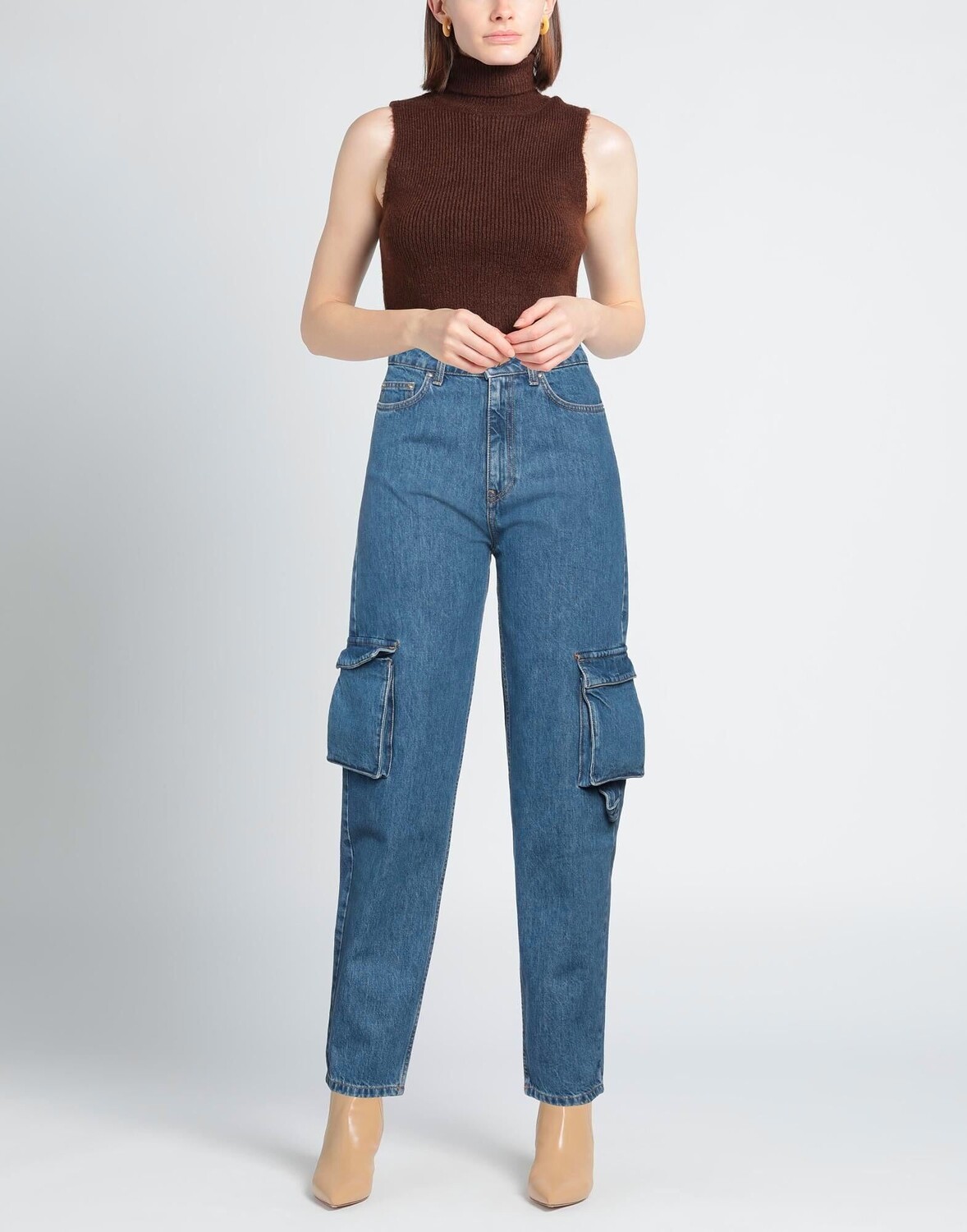 Джинсовая ткань, без аппликаций, одноцветное изделие, средняя степень стирки, завышенная талия, зауженные брючины, классический крой, 1 пуговица, застежка-молния, множество карманов, зауженная модель