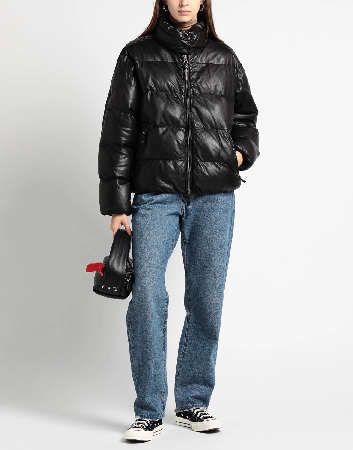 Кожа, логотип бренда, одноцветное изделие, водолазка, однобортный, длинные рукава, синтетический наполнитель, кнопки, застежка-молния, множество карманов, содержит нетекстильные части животного происхождения, не подвергать химчистке, не отбеливать, не сушить в стиральной машине , не гладить, телогрейка