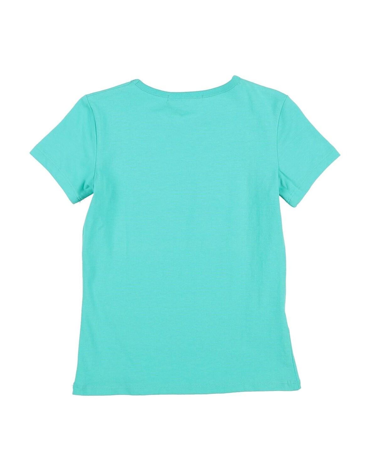 Джерси, принт, стразы, одноцветное изделие, круглый вырез, короткие рукава, без карманов, стрейч, машинная стирка, нельзя сушить в стиральной машине, не отбеливать