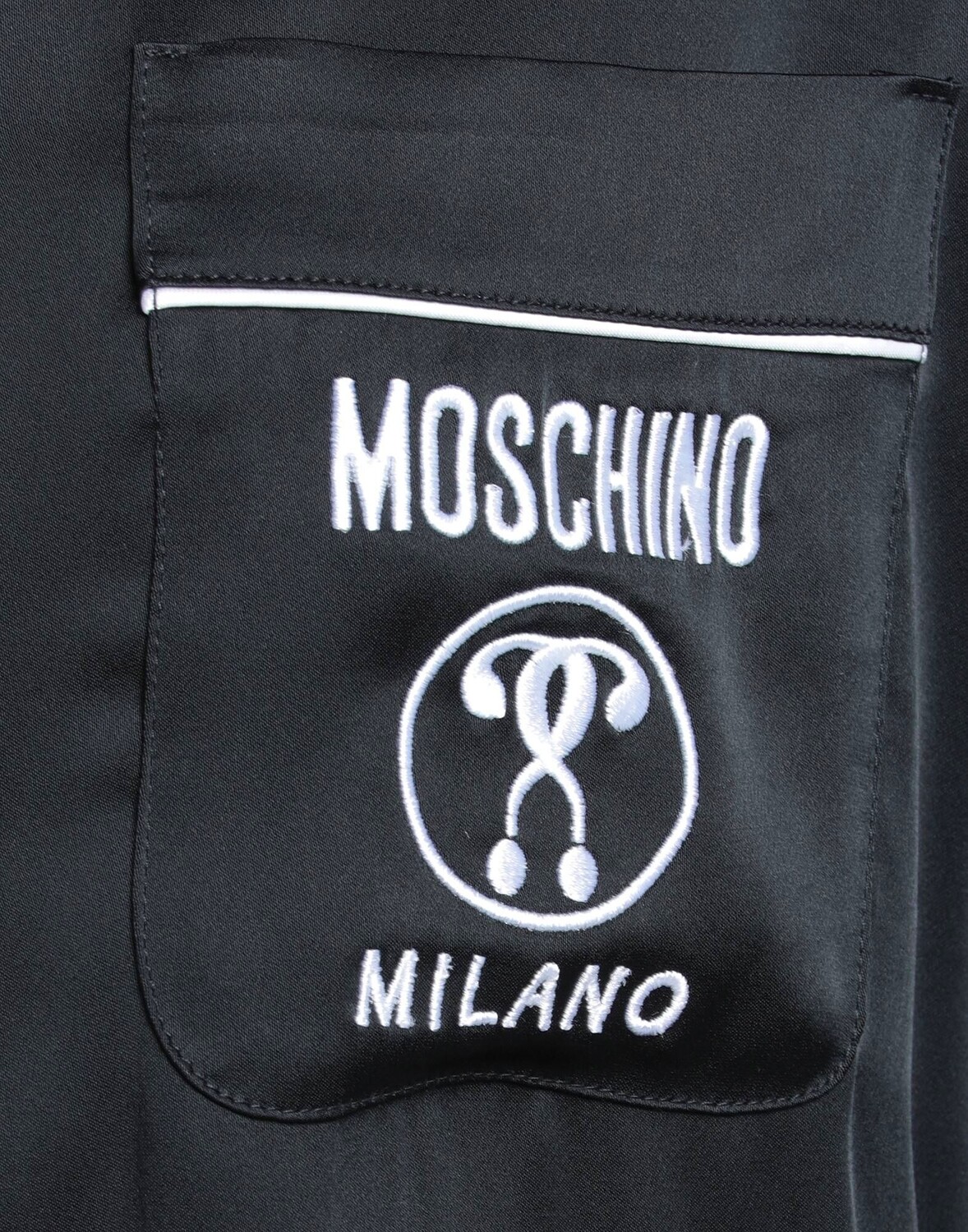 Атлас, вышивка, логотип бренда, двухцветное изображение, воротник с лацканами, короткие рукава, пуговицы, множество карманов, пижамный комплект