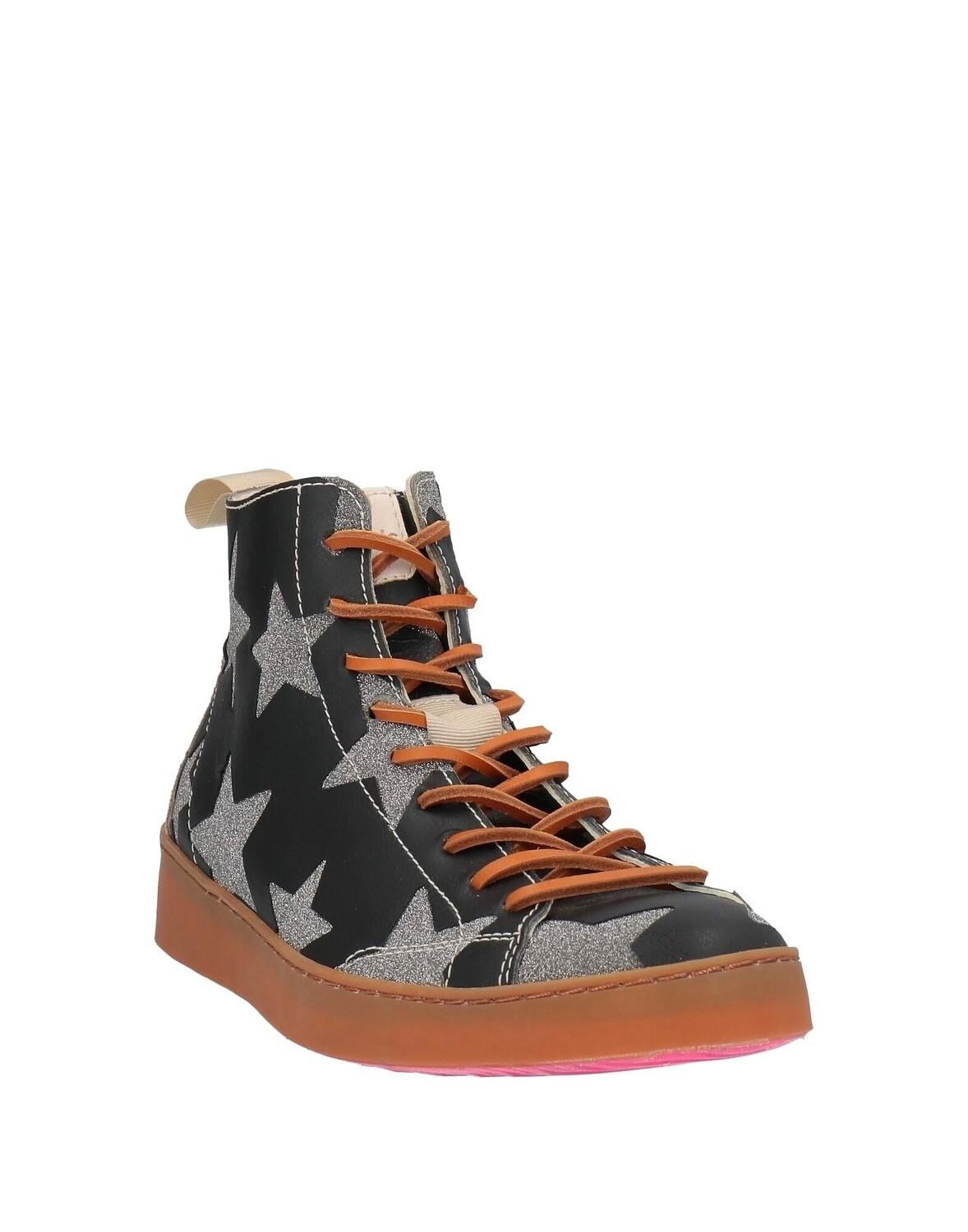 Кожа, эффект замши, блестки, логотип бренда, разноцветный рисунок, кожаная подкладка, шнуровка, скругленный носок, без каблука, резиновая подошва с тиснением, содержит нетекстильные части животного происхождения, высокие кеды и кроссовки