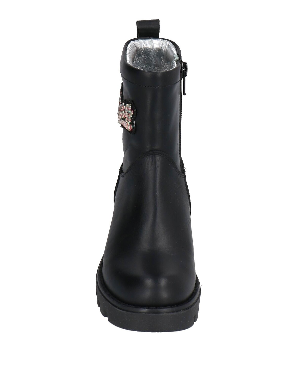 Кожа, логотип бренда, вышивка, одноцветное изделие, кожаная подкладка, застежка-молния, круглый носок, плоская поверхность, резиновая подошва с тиснением, содержит нетекстильные части животного происхождения, сапоги из теленка