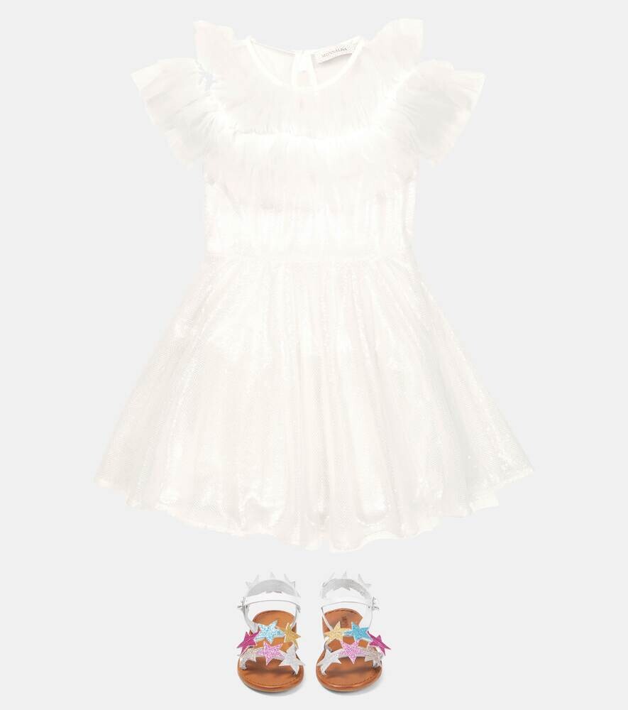 Платье с пайетками и оборками Monnalisa, белый 34 199₽