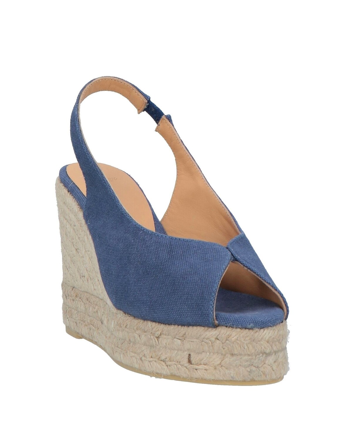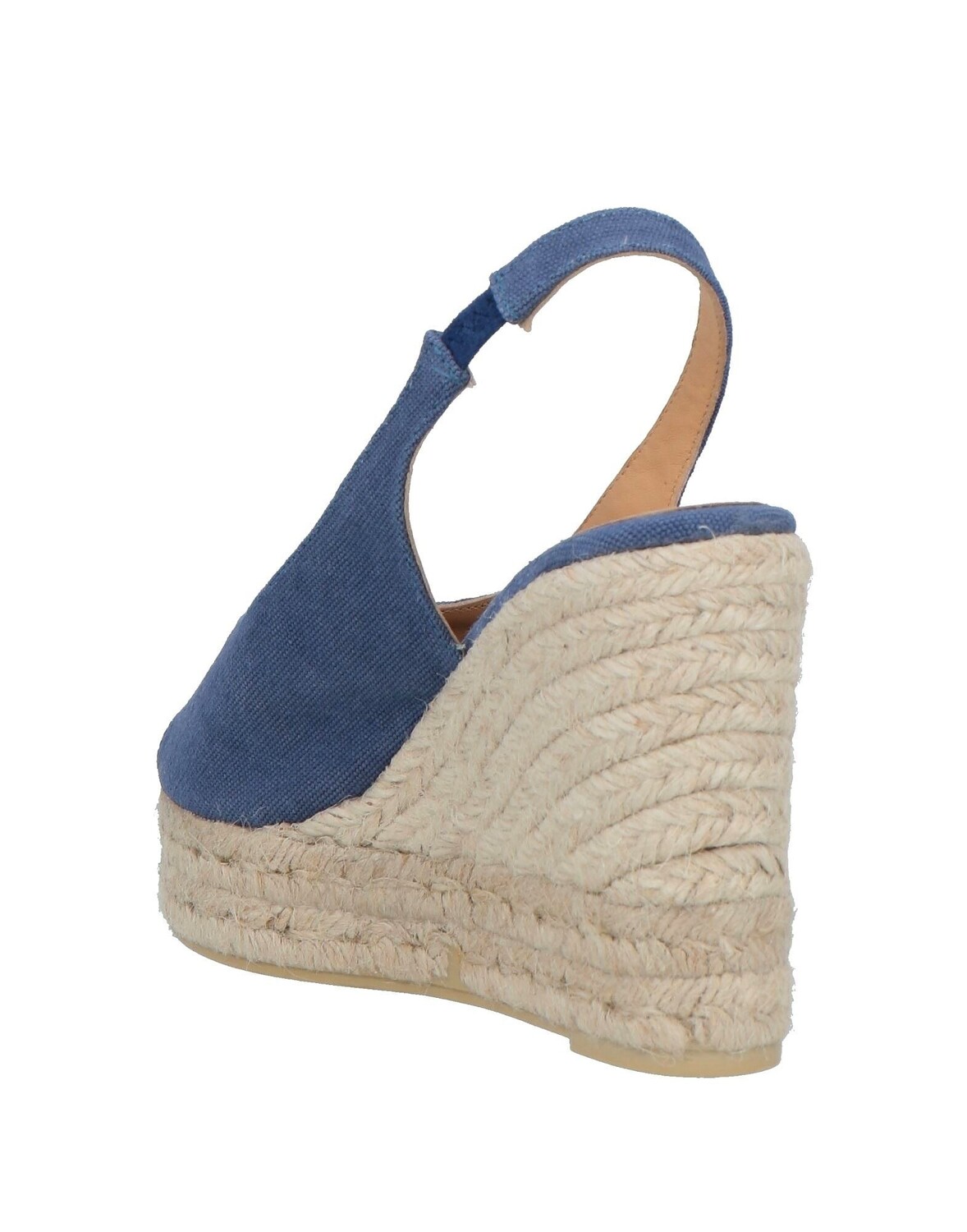 Канва, без аппликаций, одноцветное изделие, подкладка из кожи, эластичные вставки, круглый носок, танкетка, верёвочная танкетка, резиновая подошва, содержит нетекстильные части животного происхождения, босоножки-эспадрилья