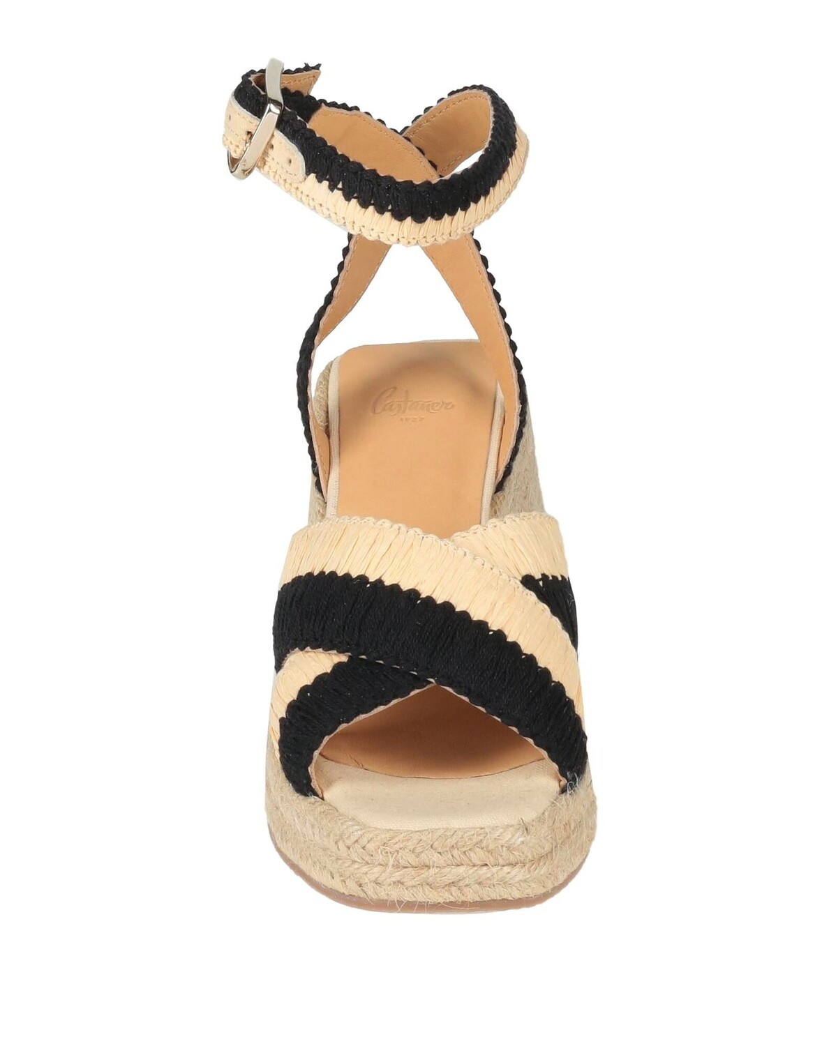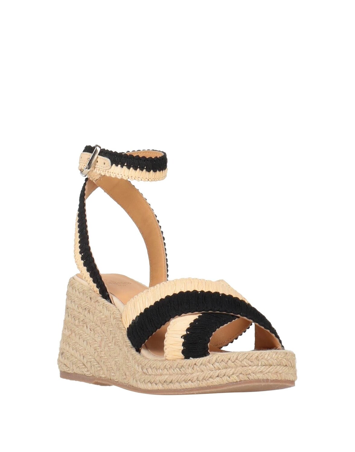 Рафия, без аппликаций, двухцветное изображение, на подкладке, ремешок на щиколотке с пряжкой, квадратный носок, танкетка, каблук-веревка, резиновая подошва, босоножки-эспадрилья
