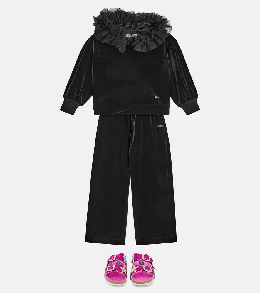 Бархатное худи с отделкой из тюля Monnalisa, черный 20 073₽