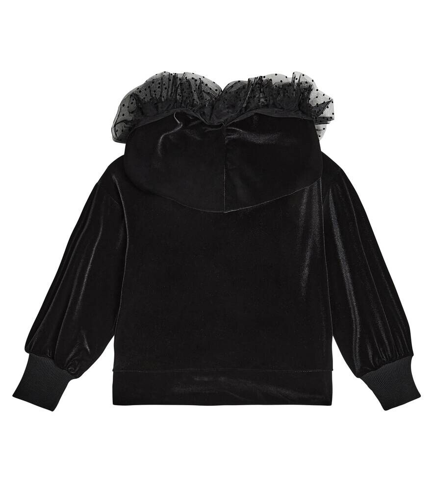 Бархатное худи с отделкой из тюля Monnalisa, черный