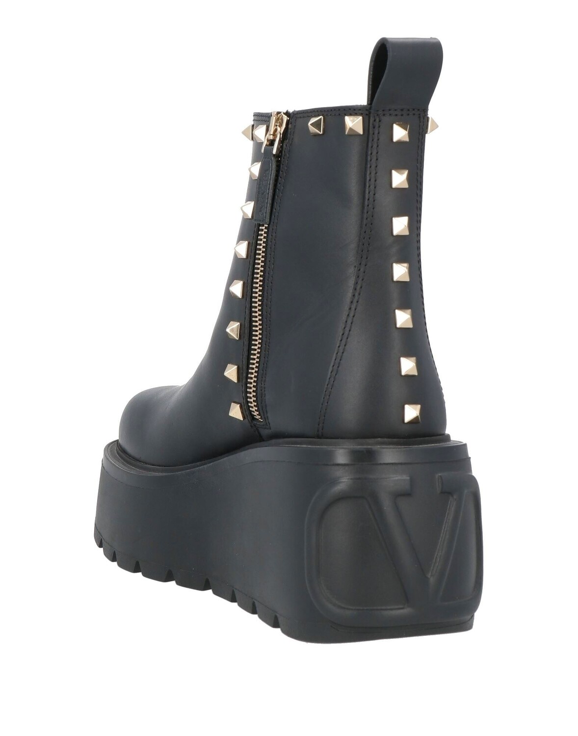 Кожа, логотип бренда, заклепки, одноцветное изделие с аппликациями, кожаная подкладка, застежка-молния, скругленный носок, без каблука, резиновая подошва с тиснением, содержит нетекстильные части животного происхождения, массивные ботинки