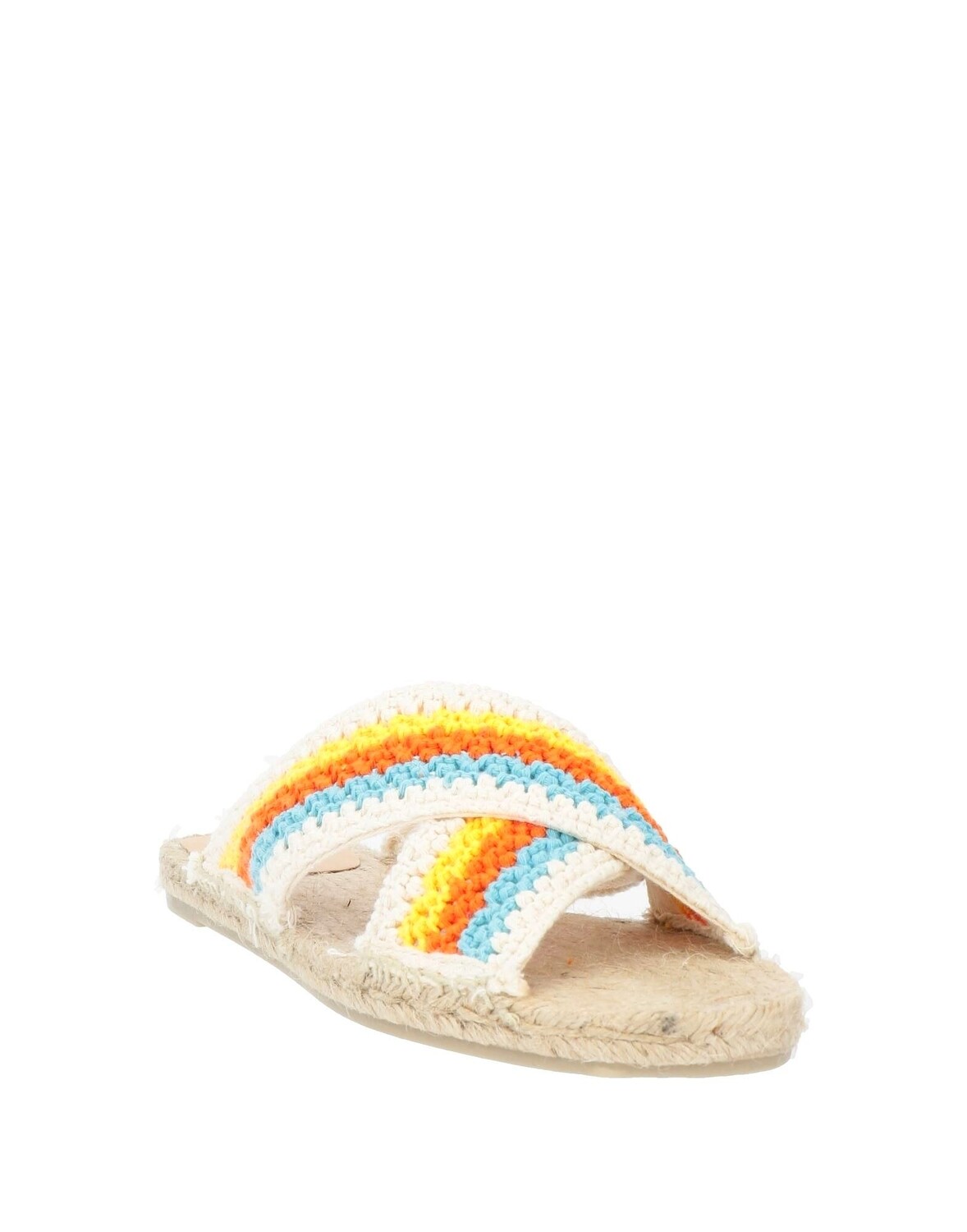 Трикотажное изделие, без аппликаций, в полоску, внутри кожа, скругленный носок, без каблука, резиновая подошва, содержит нетекстильные части животного происхождения, босоножки-эспадрилья