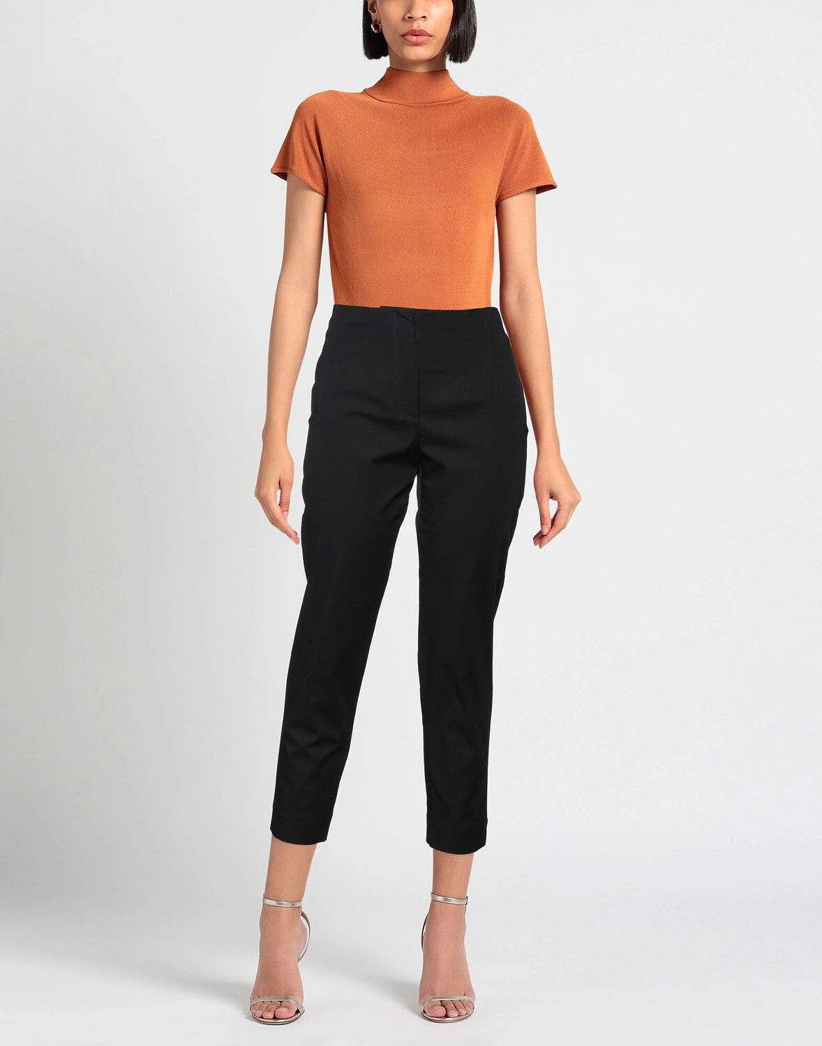 Саржа, логотип бренда, одноцветное изделие, завышенная талия, зауженные брючины, узкие брюки, застежка на крючки, застежка-молния, множество карманов, карман на молнии, стрейч, брюки чинос