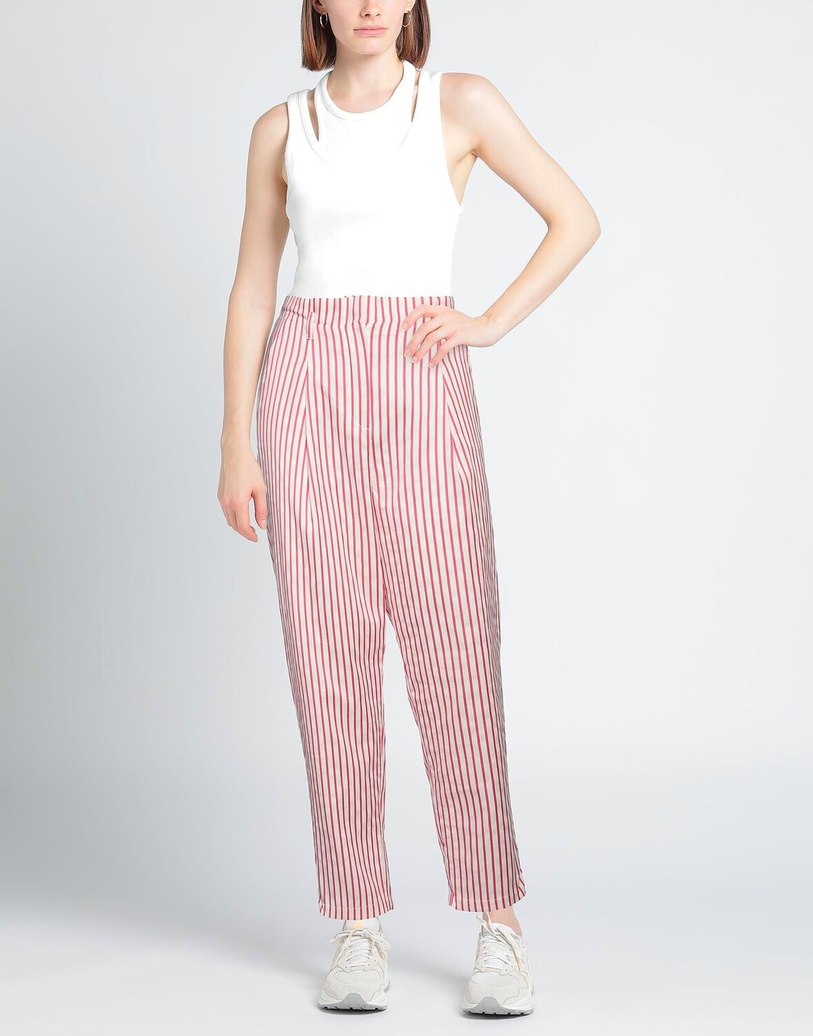 Полотняное переплетение, без аппликаций, в полоску, завышенная талия, зауженные брючины, классический крой, застежка-молния, множество карманов, брюки чинос