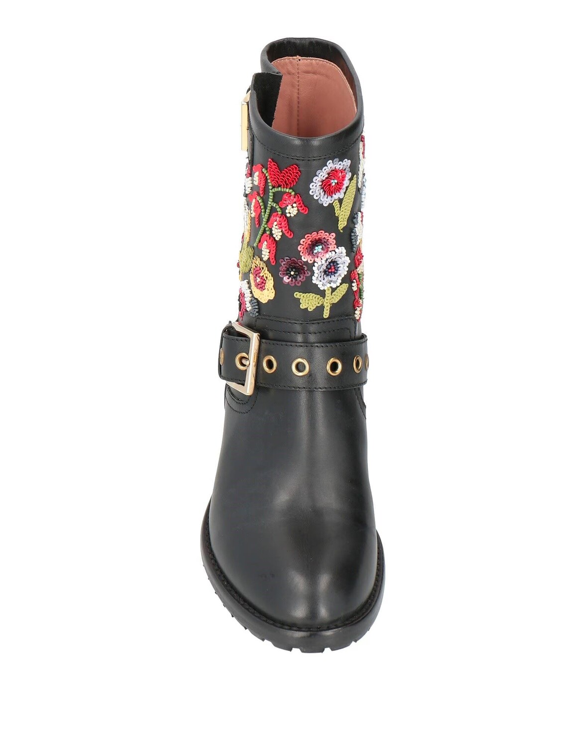 Кожа, пайетки, бусины, одноцветное изделие с аппликациями, подкладка кожаная, круглый носок, квадратный каблук, резиновая рифленая подошва, содержит нетекстильные части животного происхождения, сапоги из теленка