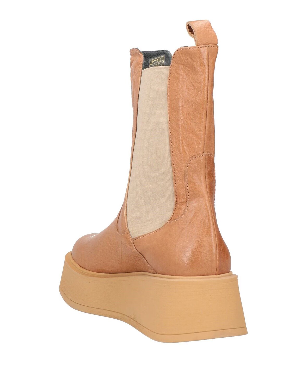 Кожа, без аппликаций, одноцветное изделие, подкладка из кожи, скругленный носок, танкетка, резиновая подошва с тиснением, содержит нетекстильные части животного происхождения, массивные ботинки