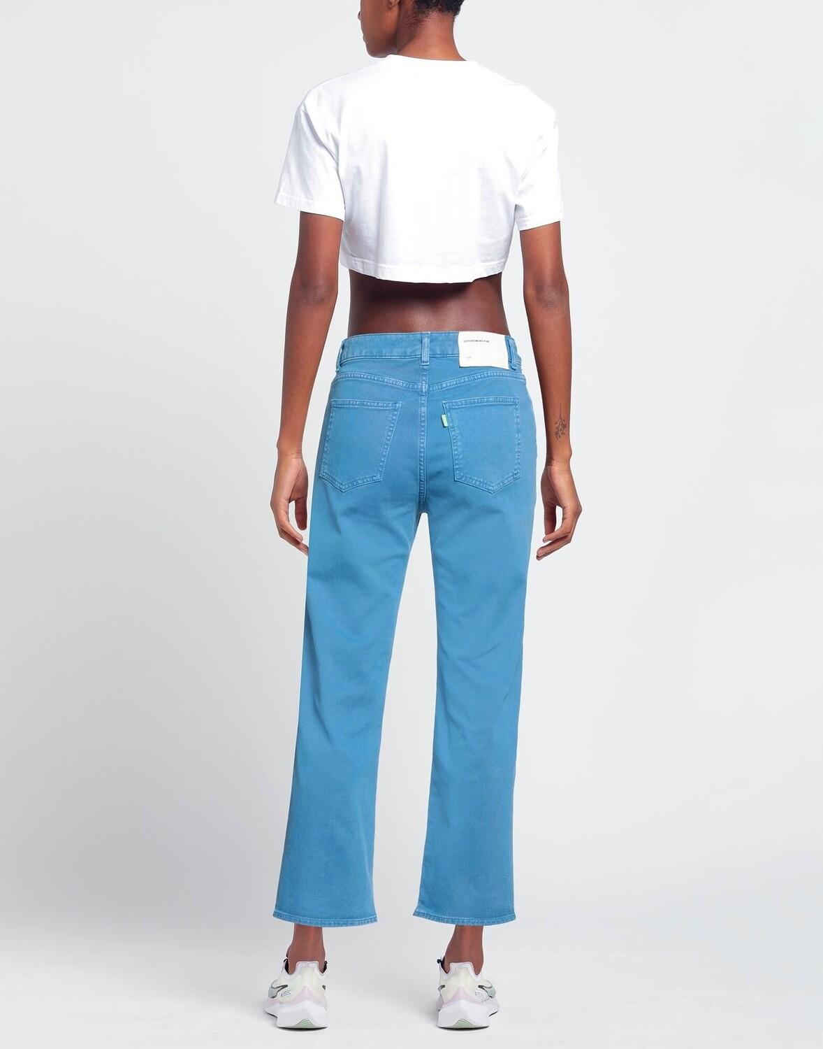 Деним, выцветший, логотип бренда, одноцветное изделие, цветная стирка, завышенная талия, шлевки для ремня, зауженная брючина, стандартный крой, 1 пуговица, застежка-молния, пять карманов, стрейч, модель мамического кроя