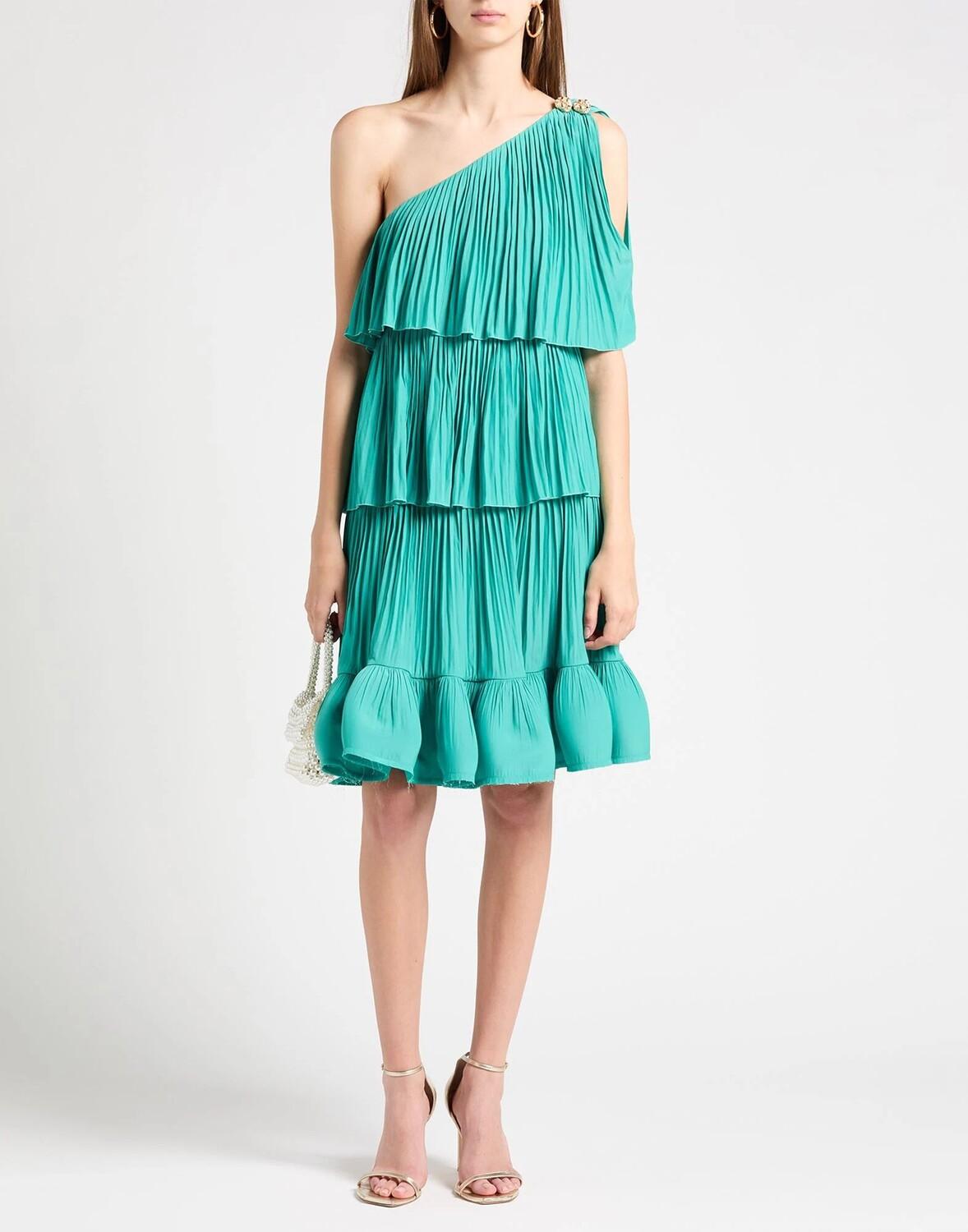 Кади, плиссе, ярусное, однотонное, на одно плечо, на подкладке, на молнии, без карманов, химчистка, нельзя отбеливать, нельзя сушить в стиральной машине, платье на одно плечо