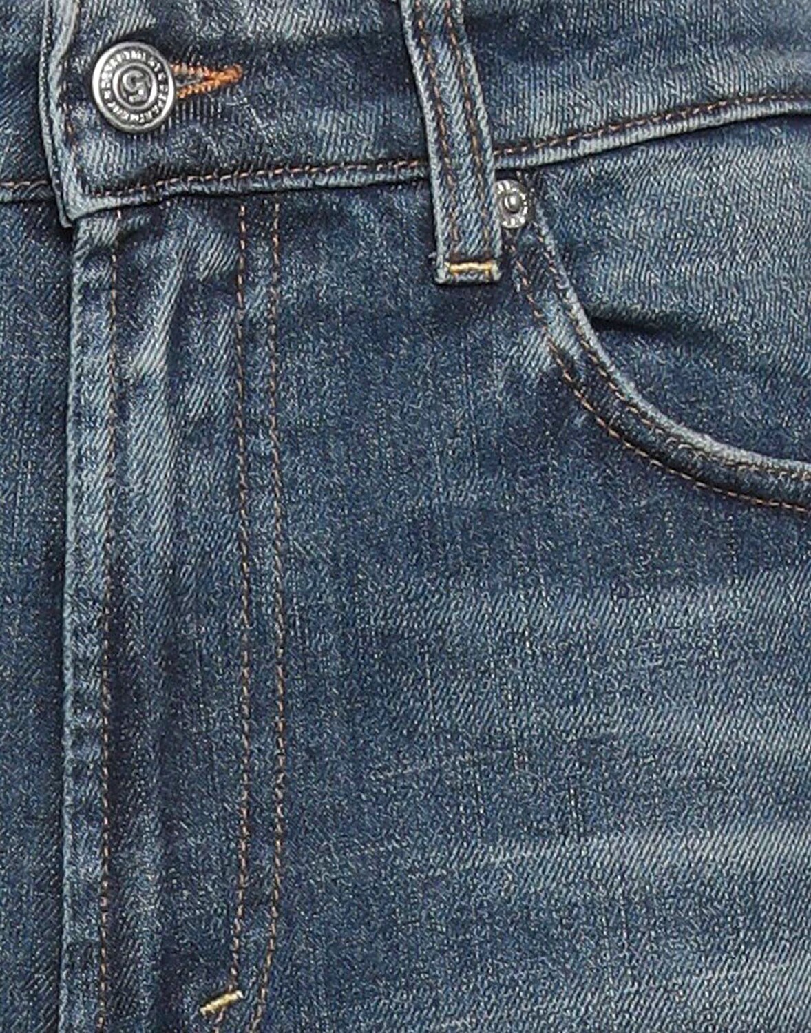 Джинсовая ткань, потертости, выцветшие, логотип бренда, одноцветное изделие, средняя стирка, завышенная талия, шлевки для ремня, стандартный крой, застежка-молния, 1 пуговица, множество карманов, машинная стирка или химчистка, нельзя отбеливать, сушить в стиральной машине, джинсы прямого кроя