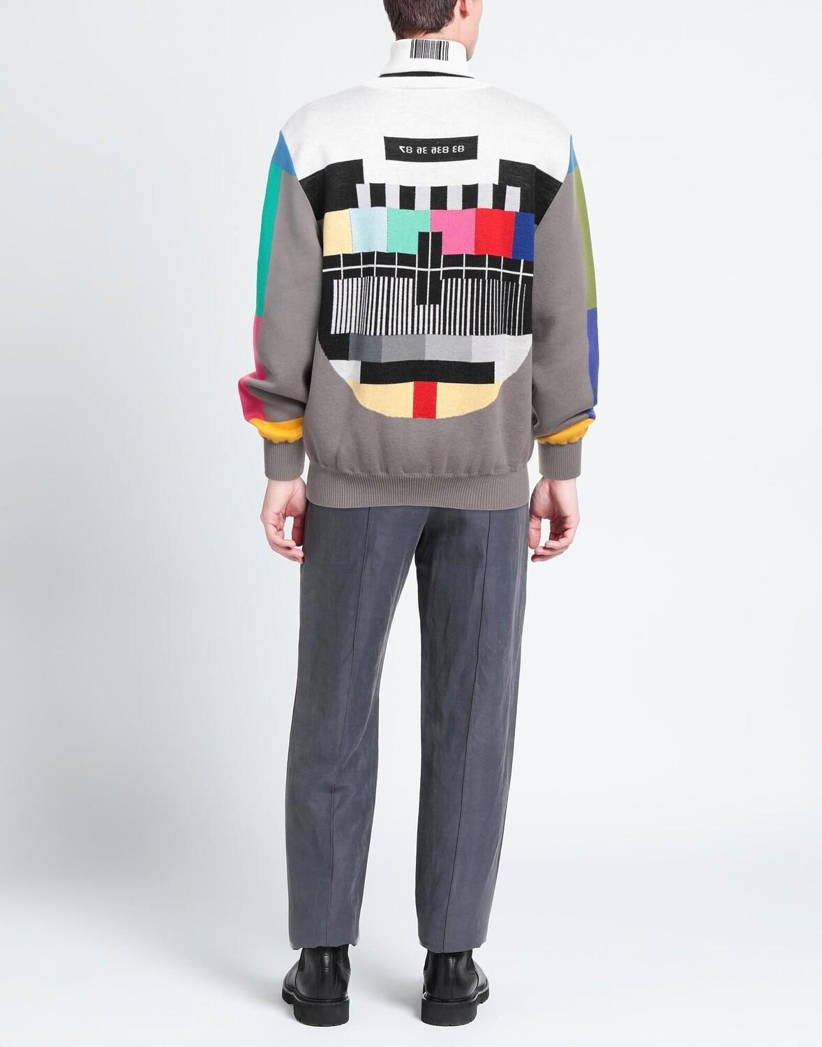 Вязаное изделие, Полоски по боковым швам, Длинные рукава, Разноцветный узор, Круглый воротник