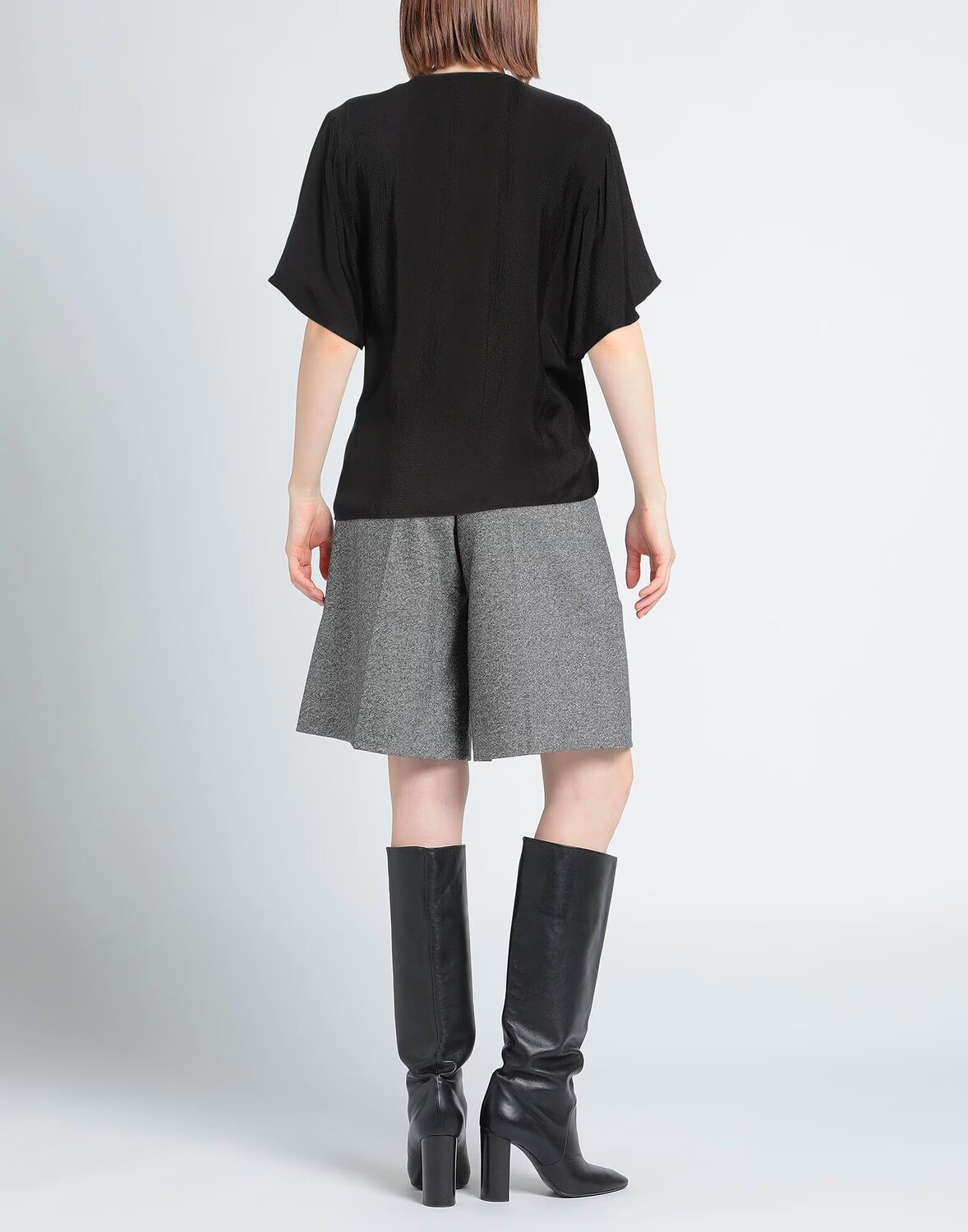 Атлас, логотип бренда, полоска, глубокий вырез, короткие рукава, без карманов