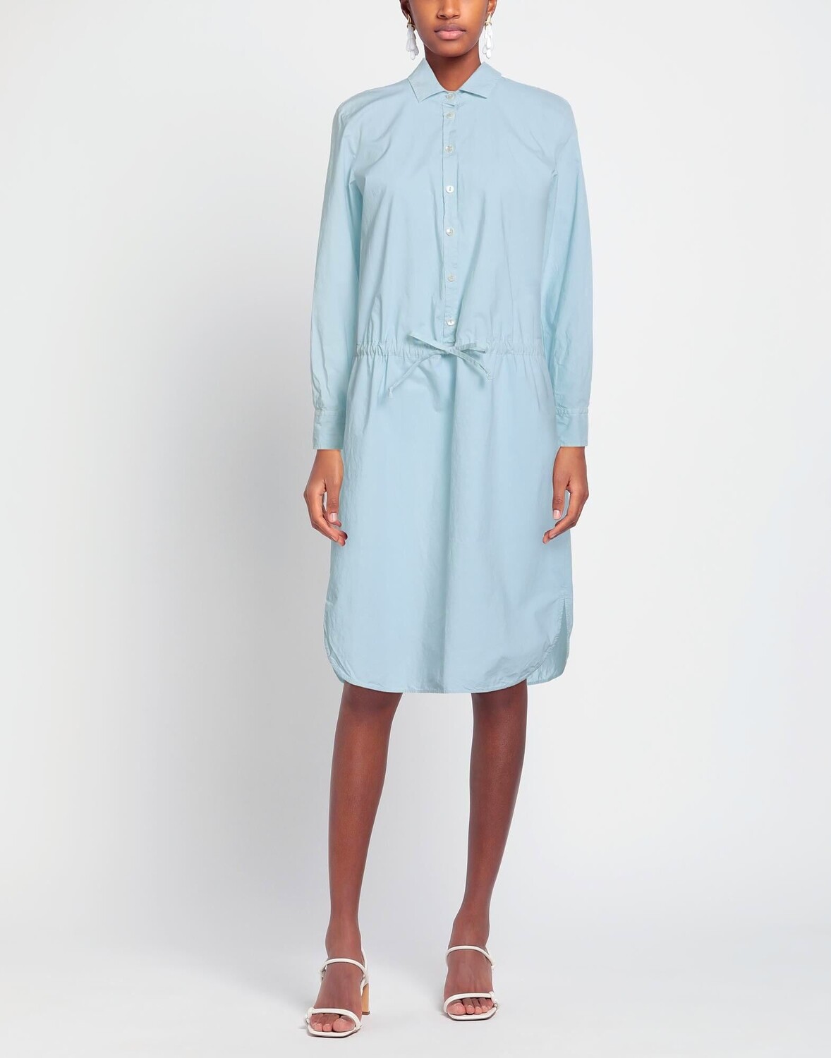 Поплин, без аппликаций, одноцветное изделие, классический вырез горловины, длинные рукава, манжеты на пуговицах, без подкладки, застежка на кулиске, без карманов, по низу разрез сбоку, стрейч, платье-рубашка