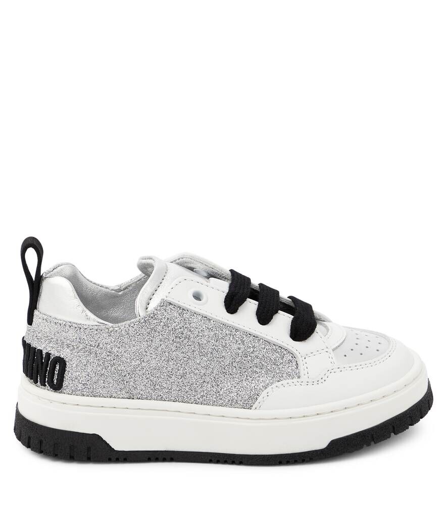 Кроссовки с блестками и логотипом Moschino, серебряный